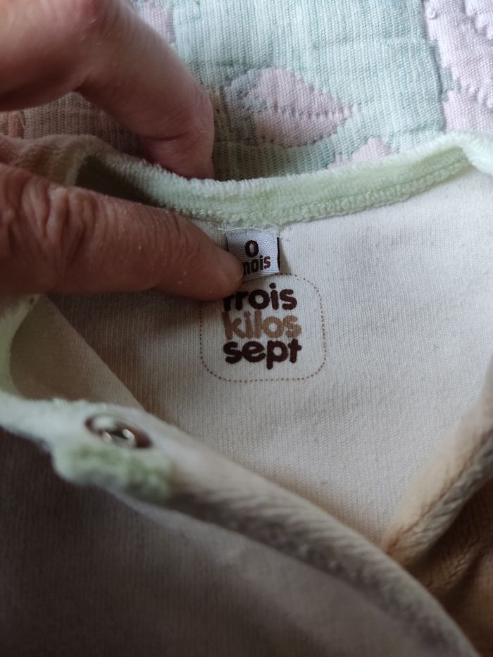 Pyjama velours mixte en très bon état. Marque : Les Kinousses. Taille : naissance, 0 mois.
