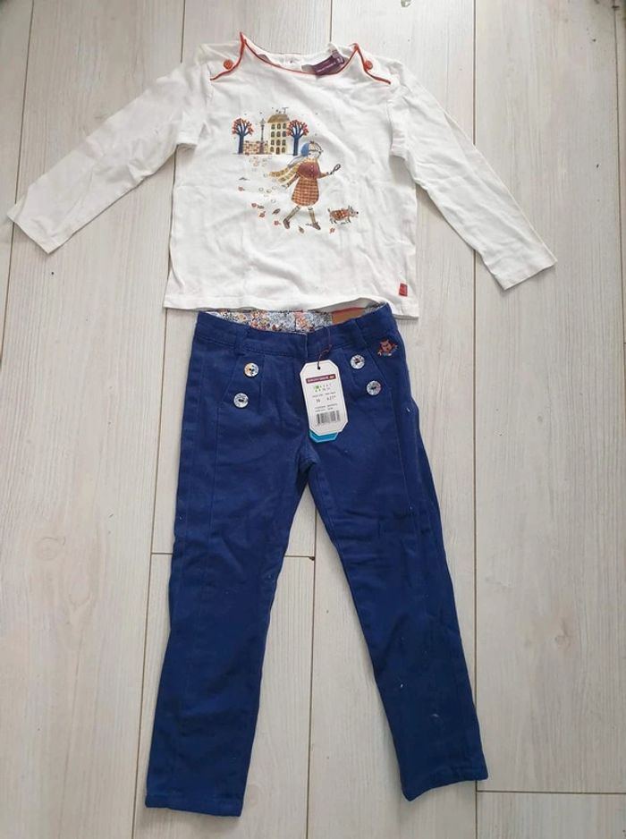 🌸Joli ensemble 🌸 🪷Marque : sergent major 🌺Taille : 4 ans haut 3 ans bas Le pantalon est neuf étiquette 🏷 à noter sur le t shirt un mini accroc Pour voir tout mon 4ans tapez dans la barre de recherche #4ansfillelili29217
