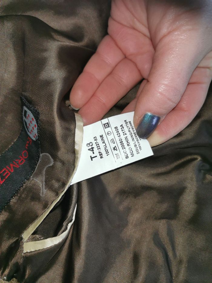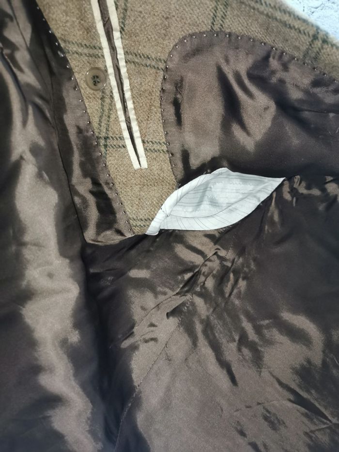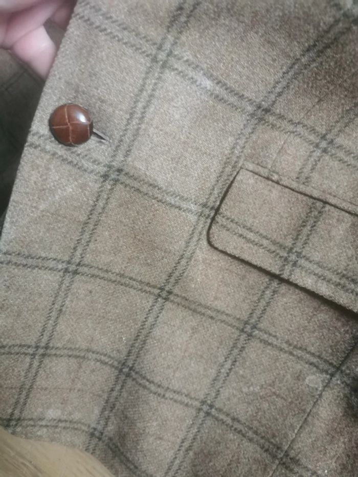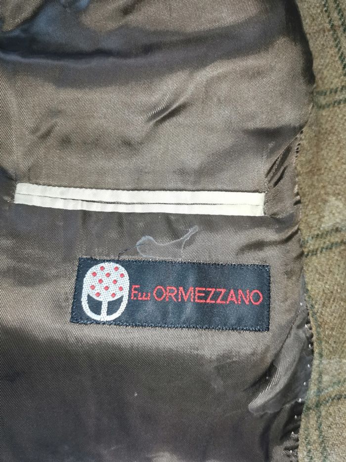 Veste marron à gros carreaux vintage en laine, marque F. Ormezzano, doublure en viscose, taille 48. Belle veste vintage pour homme, modèle classique, état satisfaisant, les boutons sont à recoudre, tachée devant, en bas du dos un trou ... à restaurer, pour une collection ou shooting photos, l'intérieur est joliment travaillé, veuillez consulter les mesures ci-dessous avant tout achat. Mesures : Largeur dos entre les aisselles : 50 cm Largeur dos entre les épaules : 46 cm Largeur taille : 49 cm Longueur veste : 74 cm Longueur manche depuis l'aisselle : 36 cm Longueur manche depuis l'épaule : 59 cm Largeur manche : 20 cm Longueur fente : 20 cm Poids : 745g #vestevintage #vestehomme #vesteacarreaux #vestelaine
