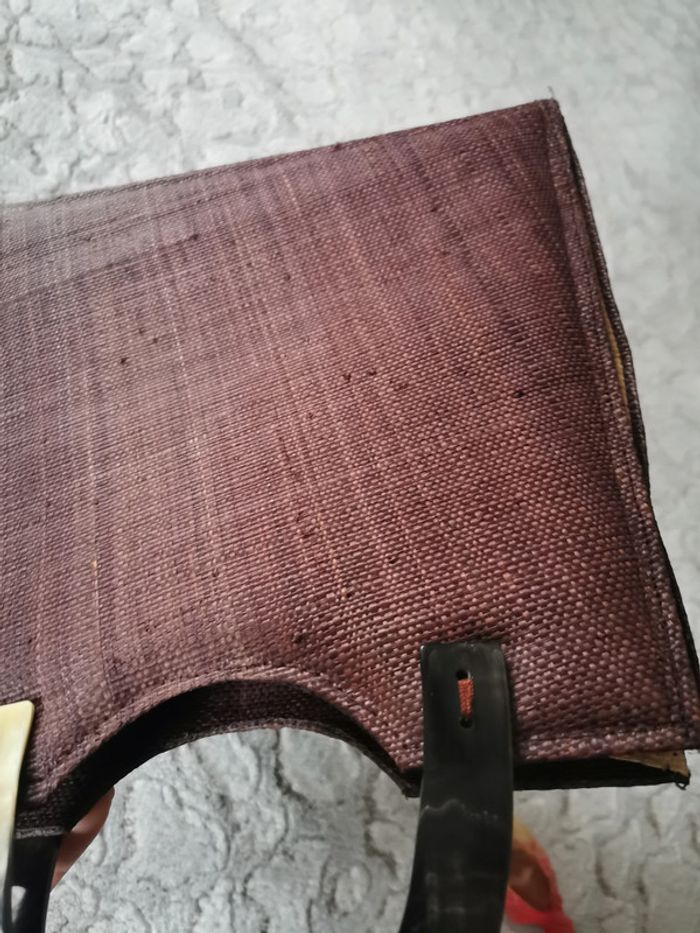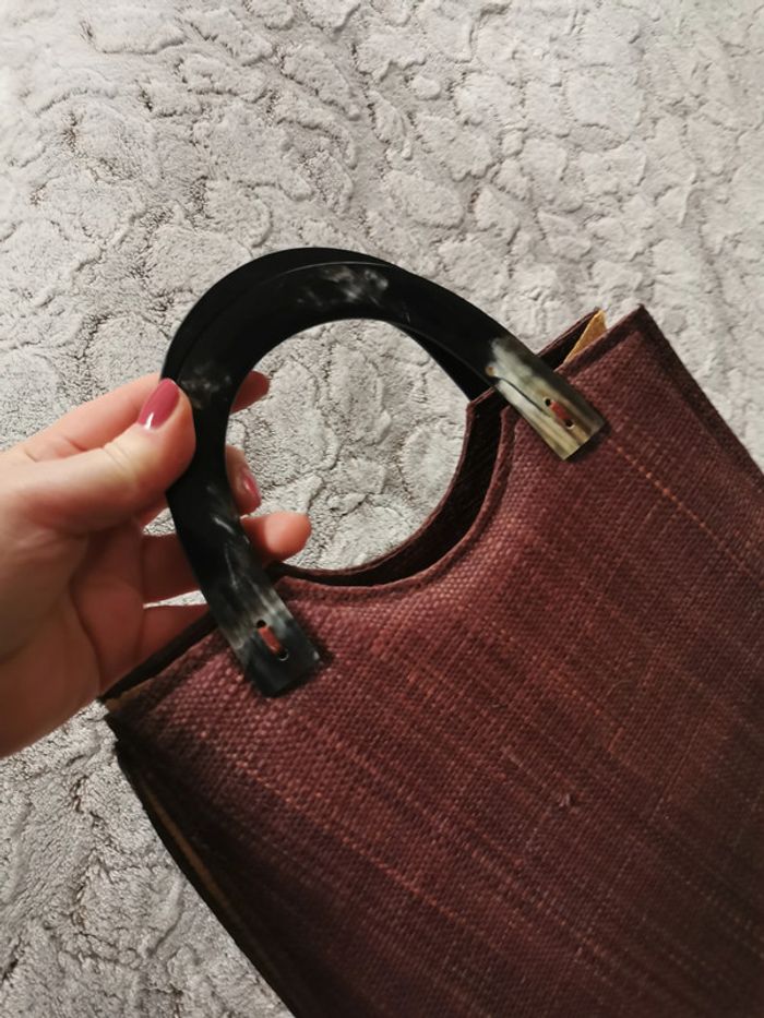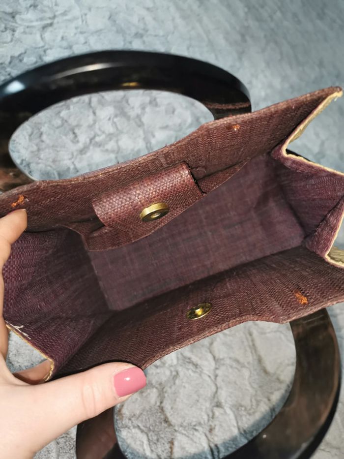 Sac à main de paille marron poignées en plastique - photo numéro 5