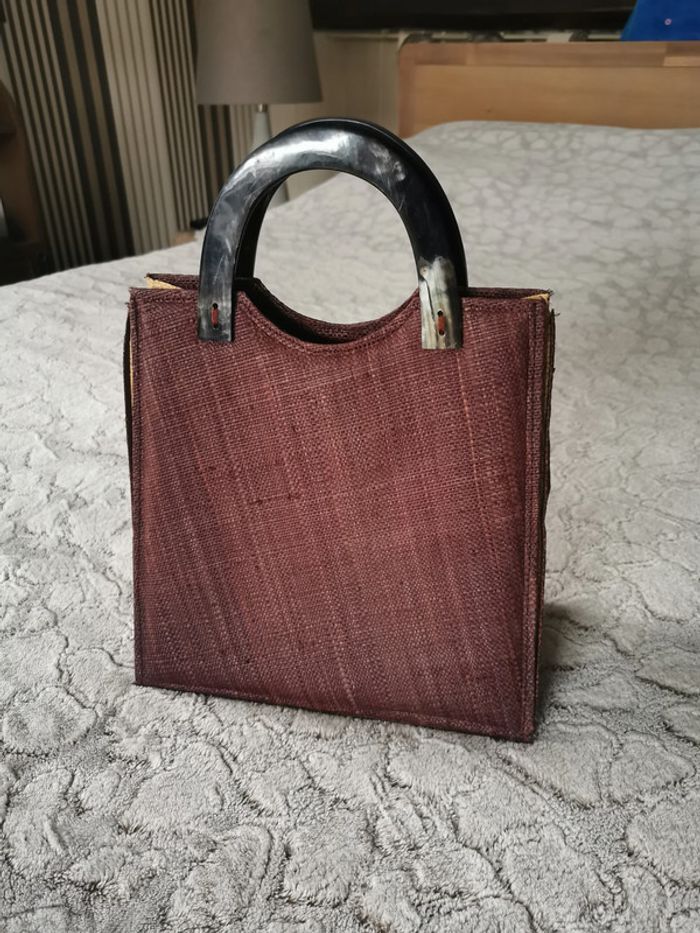 Sac à main de paille marron poignées en plastique - photo numéro 1