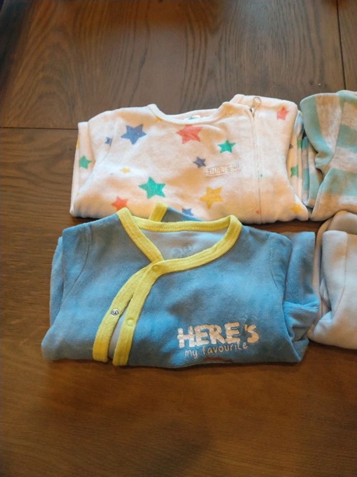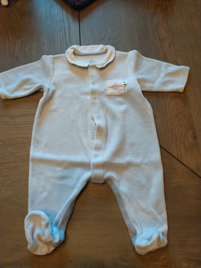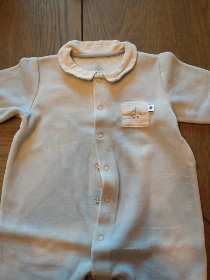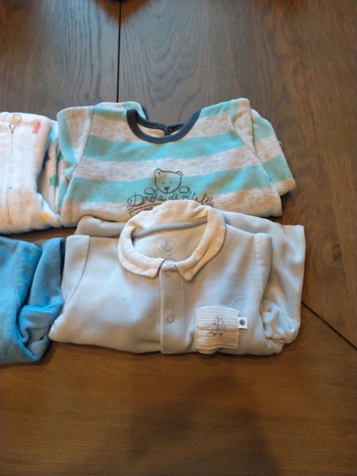 4 pyjamas 1 pièce velours 3 mois dont 2 petit bateau. Très bon état
