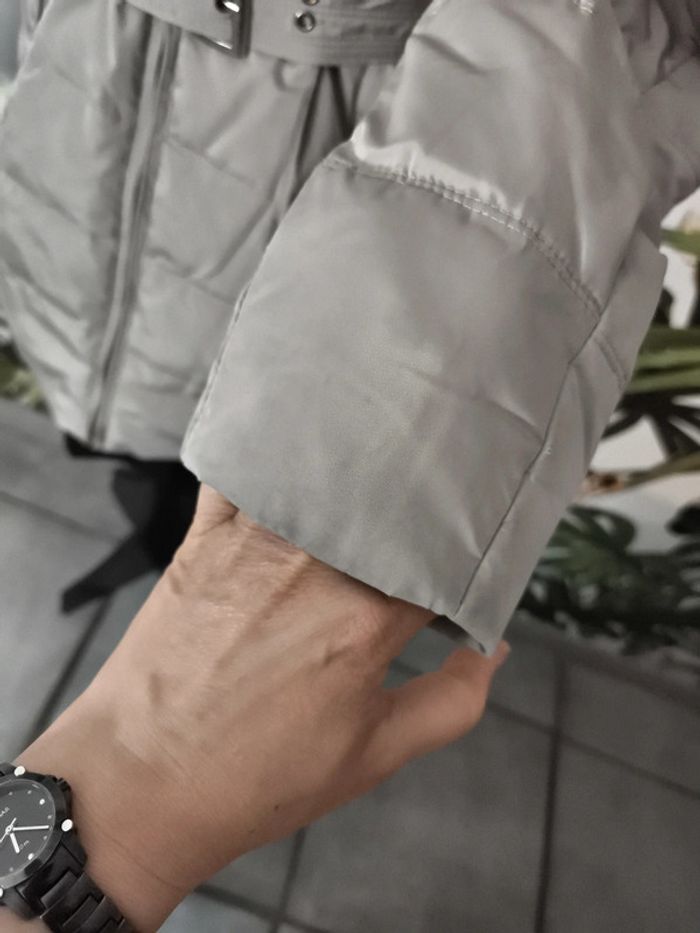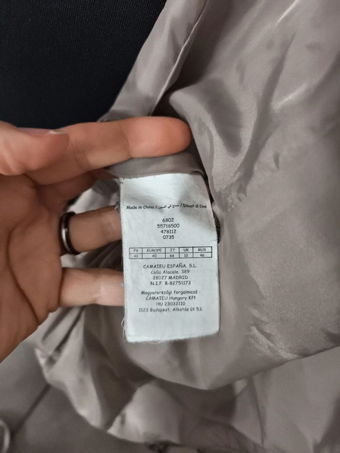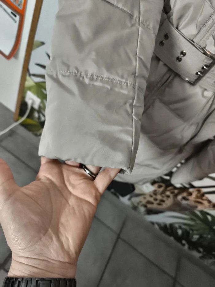 Manteau beige, camaïeu taille 40. Avec ceinture pour ajuster la taille. Il y a plusieurs défauts (des petites marques comme je montre et le bout des manches, les zip ). Le tout reste discret, de première vue il est en très bon état. 📏 Épaule à épaule : 38 Aisselles à aisselles : 48 Longueur à partir du haut d'épaule : 78 #L40marylinebonte