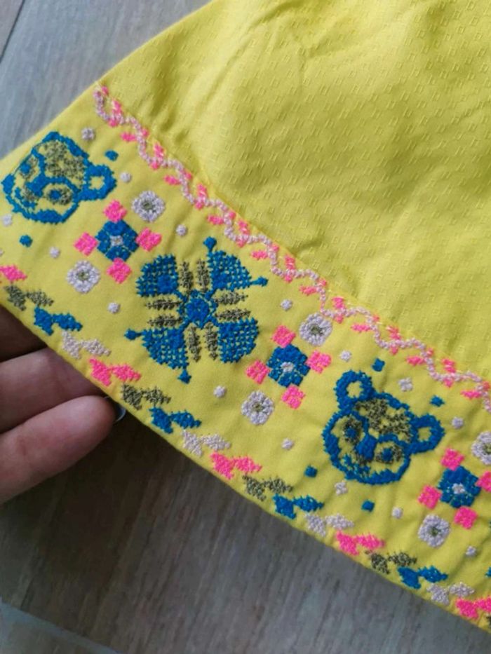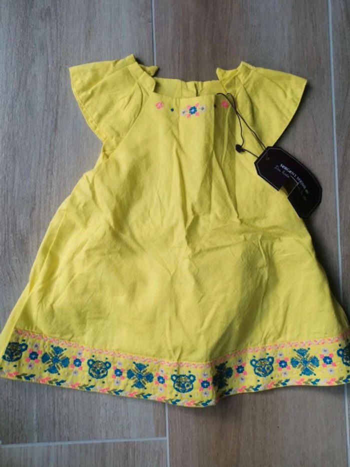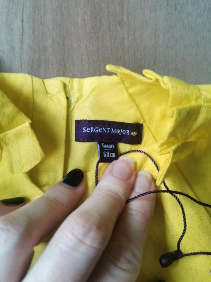 Jolie robe jaune avec broderie dans le bas et son bloomer assorti Boutons dans tout le dos, doublée Taille 6 mois Sergent Major #mabiquette10fille6mois