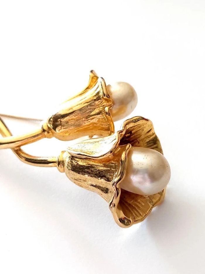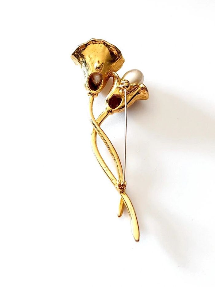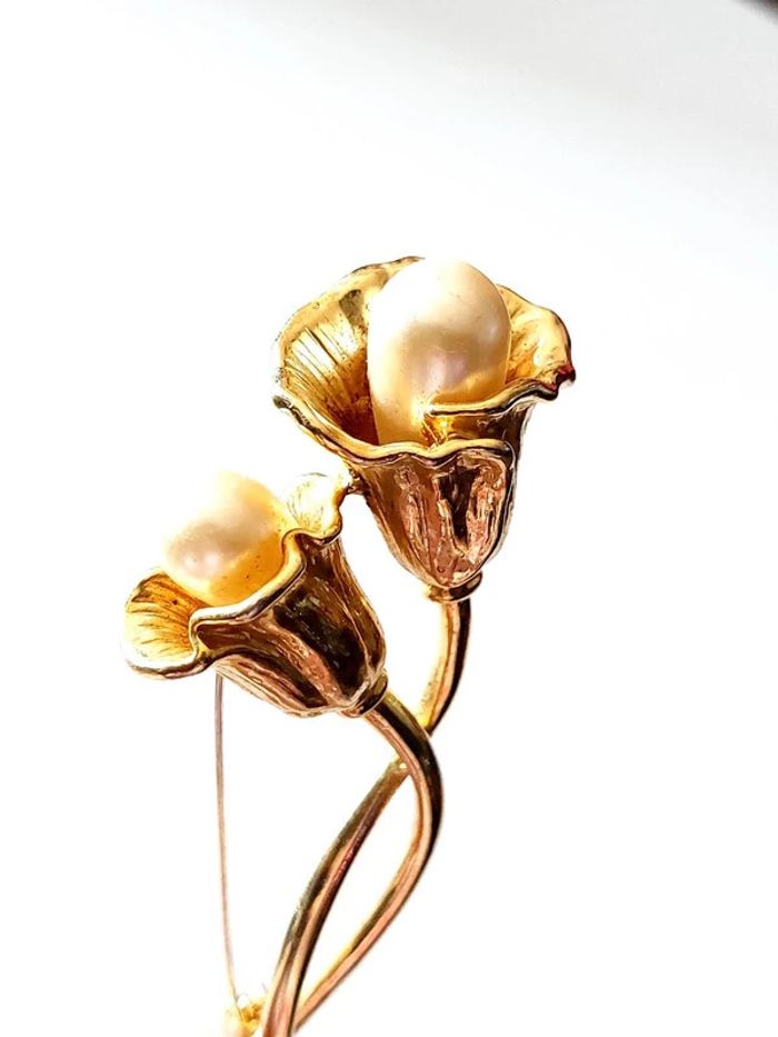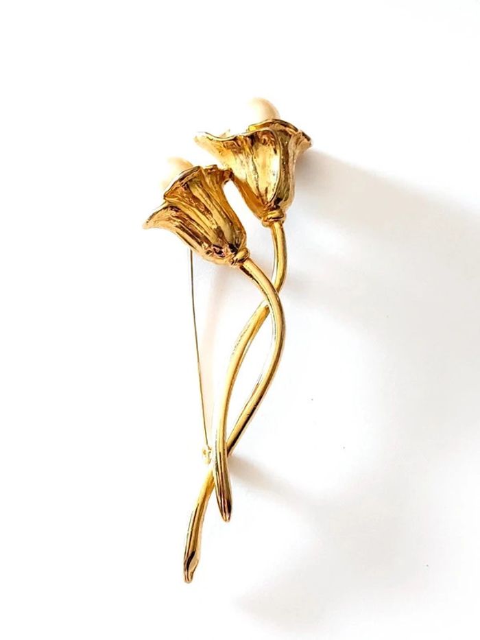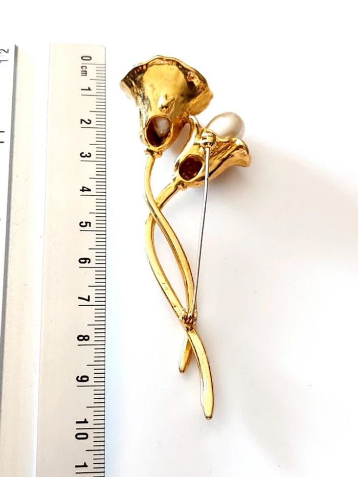 Magnifique broche vintage tulipe blanche avec perles - photo numéro 7