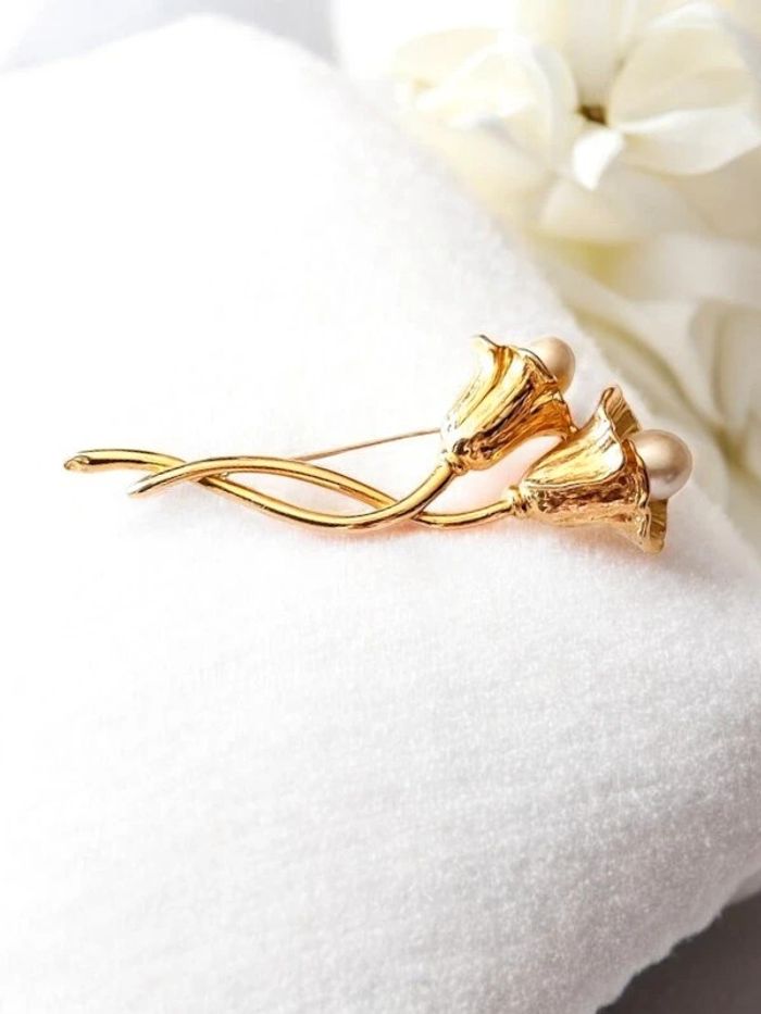 Magnifique grande broche vintage, paire de 2 tulipe avec perles nacrées blanches. Métal doré. Très bon état. Très élégante. D'autres bijoux sont à découvrir dans mon dressing #bijouxsupernova 💙 Nous offrons 10% de réduction pour nos abonnés Instagram @caelifer_ ⚜️ Je suis disponible pour d'autres renseignements / ou demandes de lot. 💙 Les envois se font soit le jour même ou en 72h maxi ! Tags Vintage chic hippie 60's 70's 80's 90's 00's Y2k foulard soie collier bijoux fantaisie signature boucles d'oreilles bague bracelet manchette jonc parure pendentif médaille religieux ancien brocante antiguo antico juwelen bigiotteria joyería antigua antique antik vieux victorien belle époque 1920 art déco art nouveau 1930 années 50 lot gros lot lotto set carré friperie poinçon pièce rare argenté doré bronze perles strass