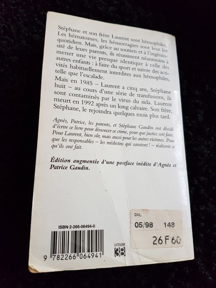 Temoignage sur le scandale du sang contaminé. Etat satisfaisant voir photos