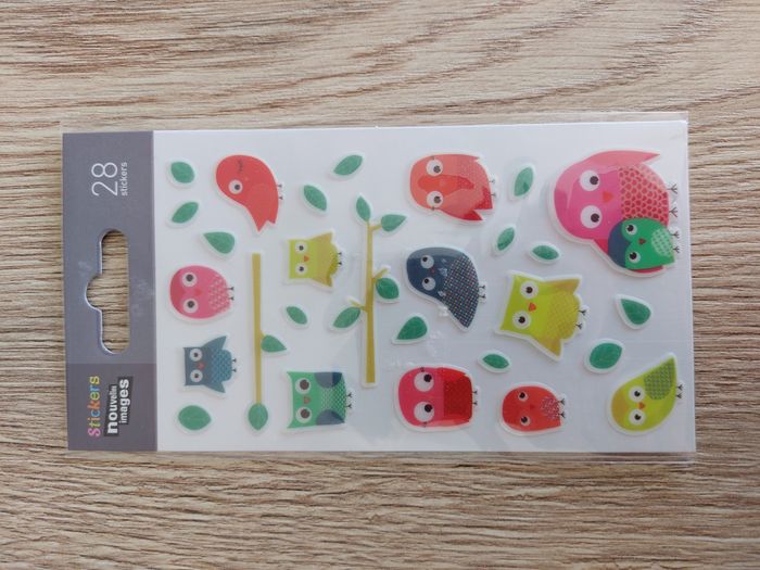 Petite planche d'autocollants de la marque Nouvelles Images. Neuve, encore dans son emballage d'origine. Motif chouettes, hiboux, branches & feuilles. Dimension de la planche = 12,2 x 7,4cm environ. Fabriqué en Chine. N'hésitez pas à me contacter si vous avez des questions. Je vous répondrai dès que possible.