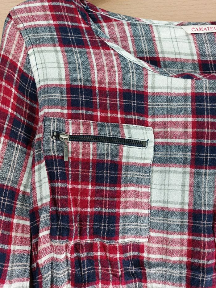 Blouse à carreaux Bleu et rouge Poches poitrine avec zip Taille 42