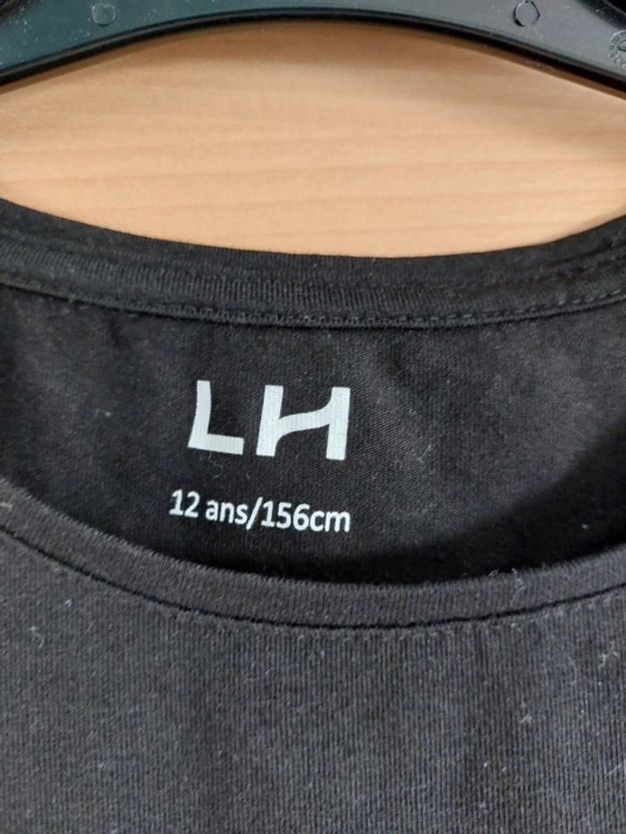 T shirt manches longues noir Petites froncés aux épaules 12 ans