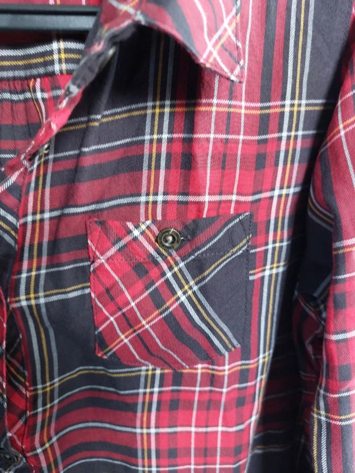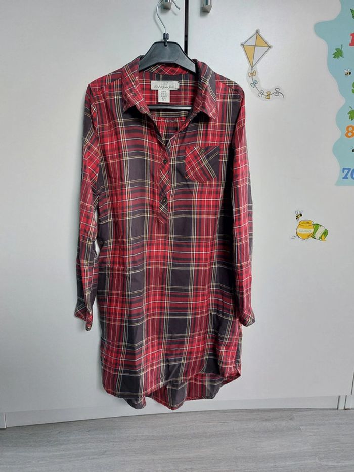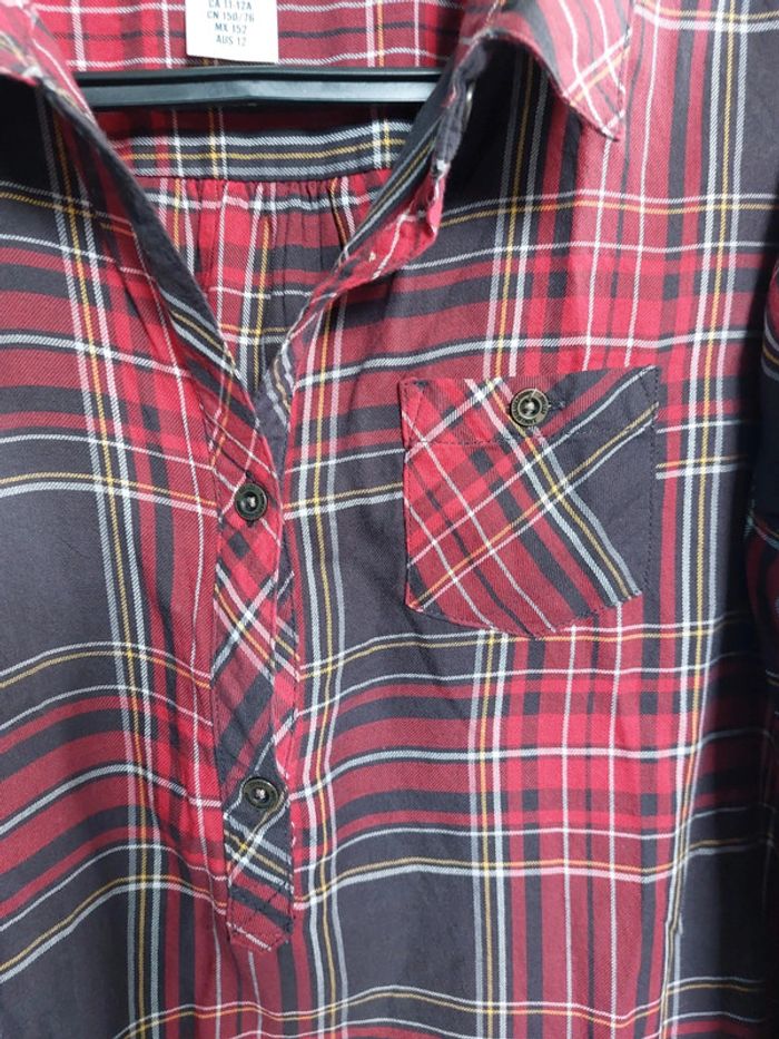 Robe chemise À carreaux rouge Passant pour ceinture Manches retroussables 11-12 ans