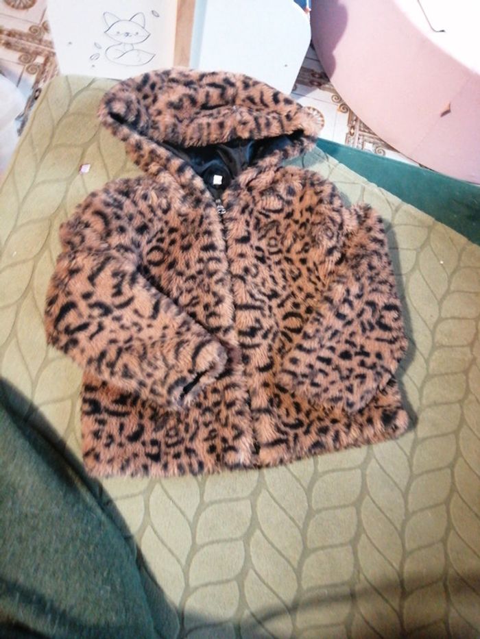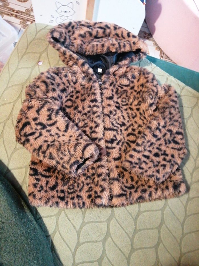 Manteau fausse fourrure léopard, Taille 92 cm / 2 ans