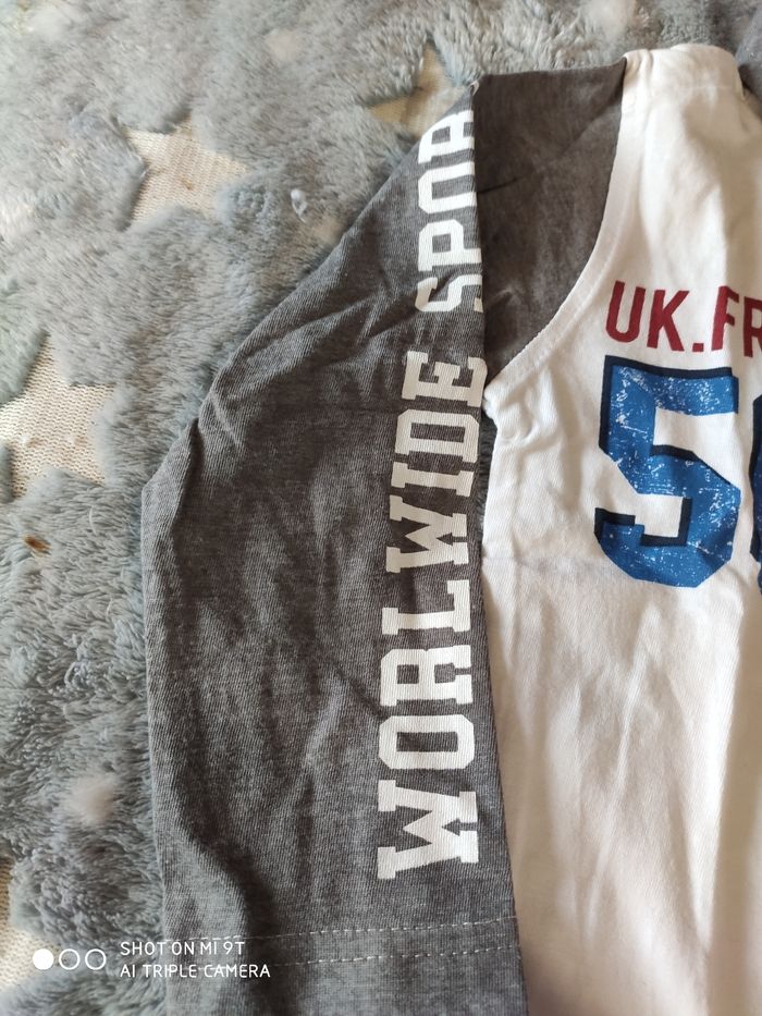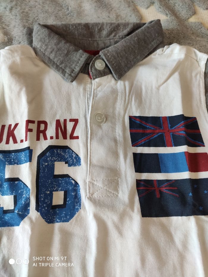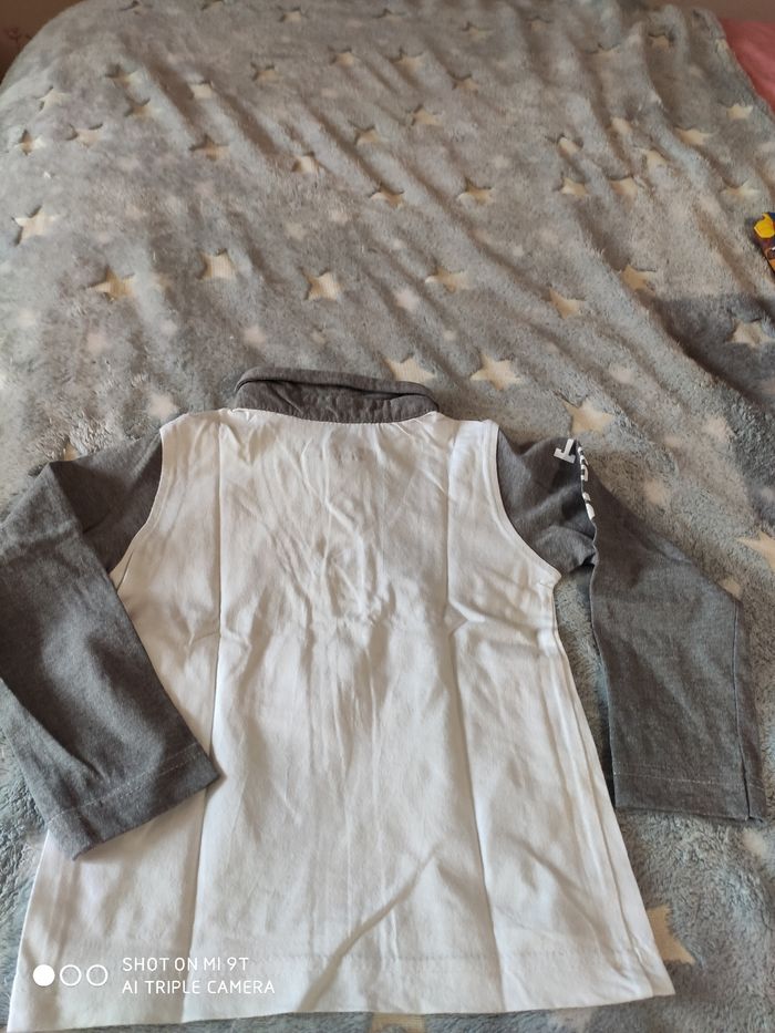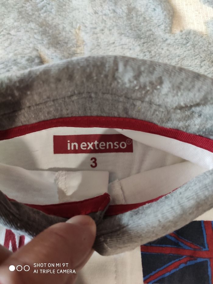 Tee shirt manches longues garçon taille 3 ans en très bon état, pas de tâches ni trous. Couleur gris clair, bleu rouge et blanc avec graffiti sur le devant de chez in extenso. Taille correctement et porté par un seul enfant sur une saison.