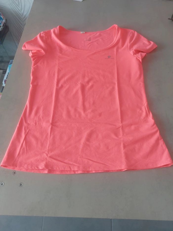 A vendre t-shirt de sport, de marque Domyos, en très bon état, taille 38. Il est rose fluo. #tshirtfemme38 #tshirtsportfemme38
