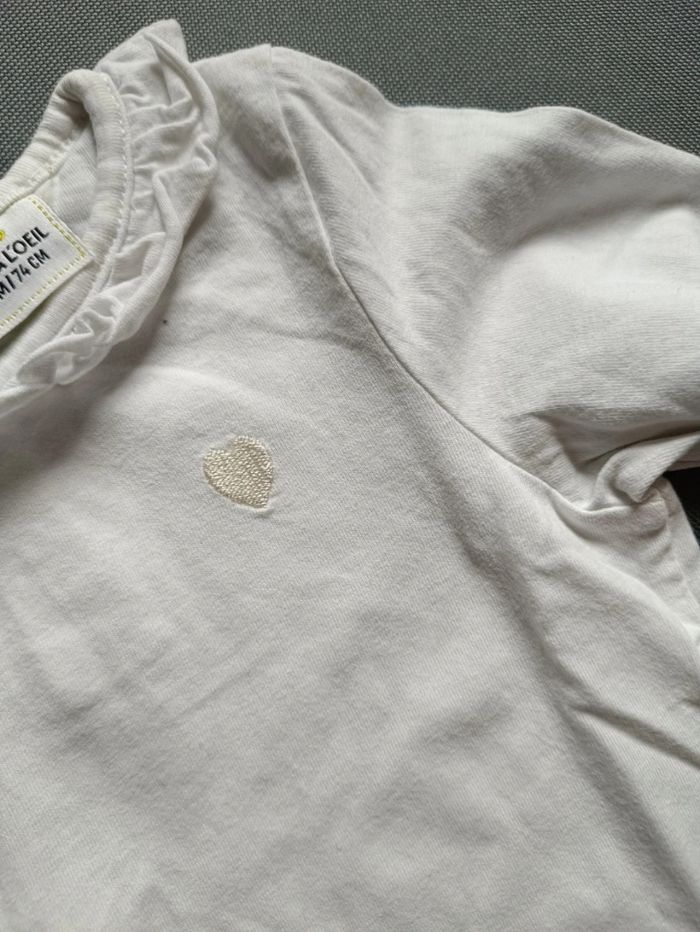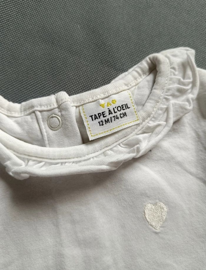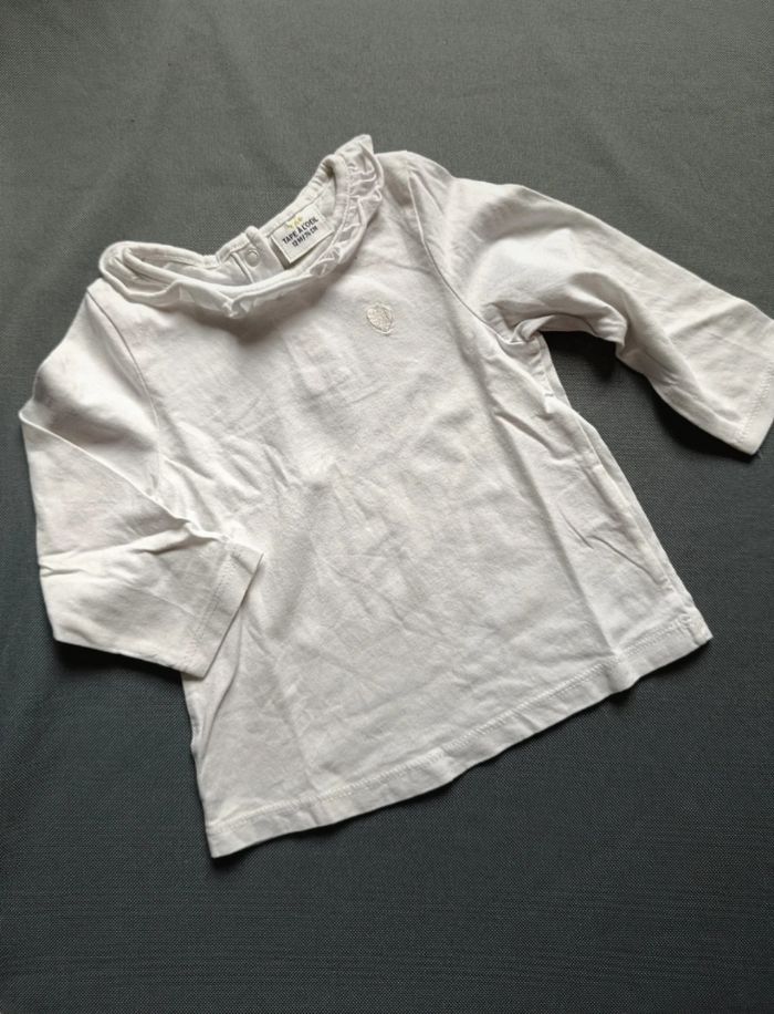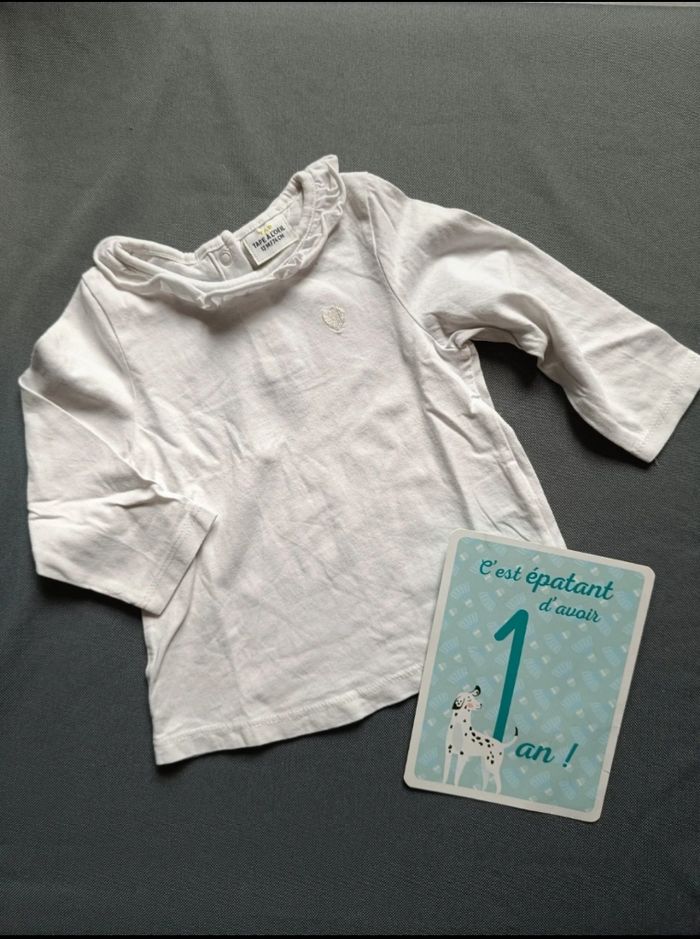 T-shirt à manches longues avec collerette. Pression dans le dos. Couleur crème. Très bon état. Taille 12 mois (74 cm) 💕Beaucoup de vêtements dans mon dressing avec réduction sur lot. Je fais le grand tri !