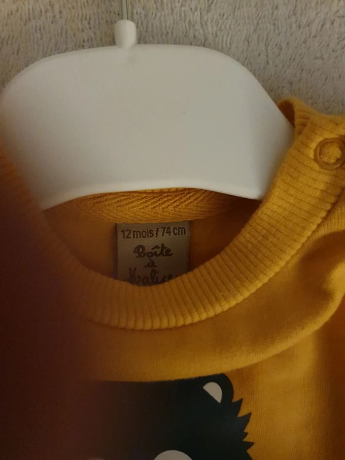 A vendre pull jaune garçon 12mois de chez Boîte à Malices , en très bon état