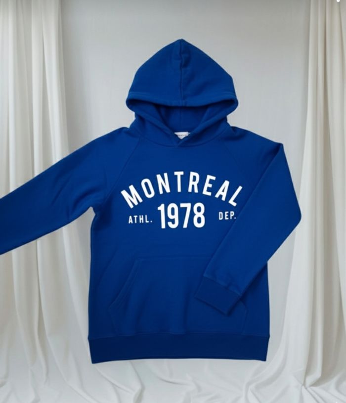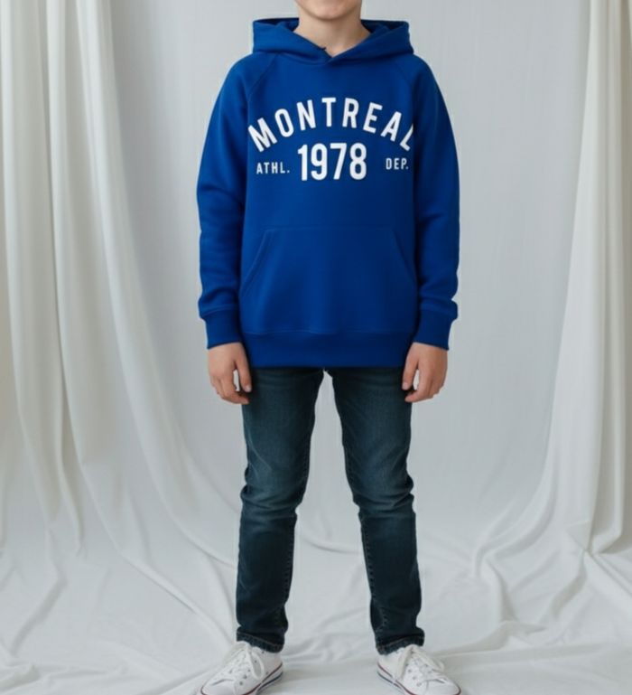 T-shirt manches longues à capuche, pour garçon taille 6-7 ans, bleu, en très bon état, très peu porté