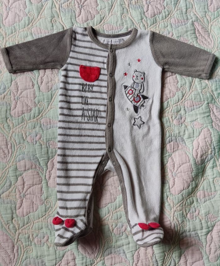 Pyjama velours en très bon état. Marque : Gémo. Taille : 1 mois.