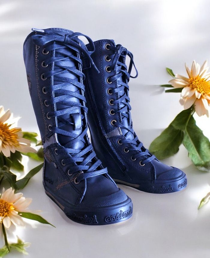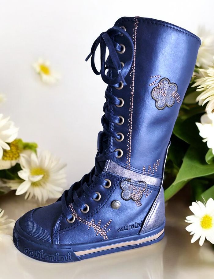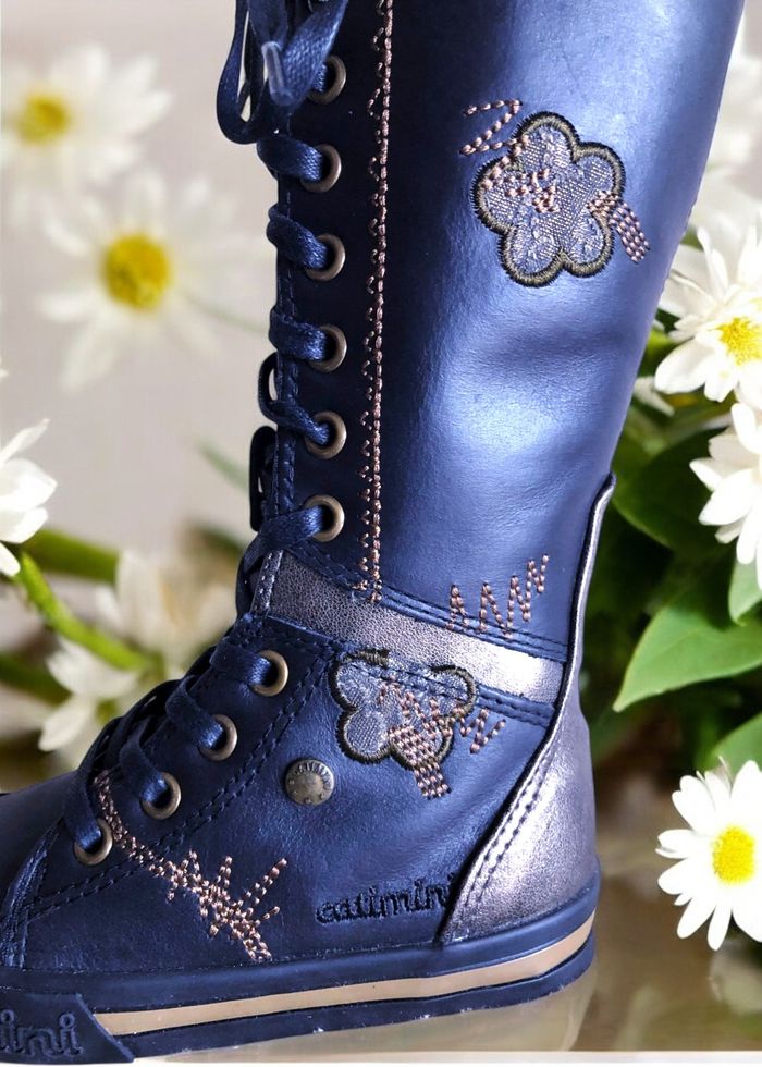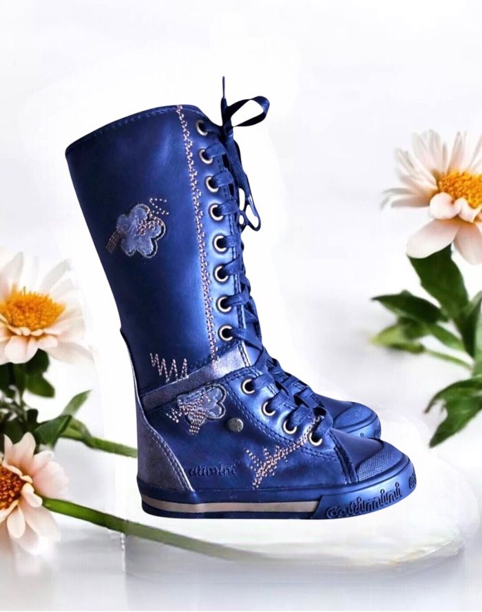 CATIMINI - NEW - BOTTES CUIR TYPE CAVALIÈRE CHOCOLAT AVEC FLEURS OR MORDORÉ 24 - photo numéro 1