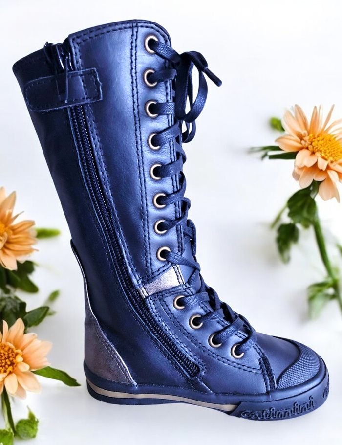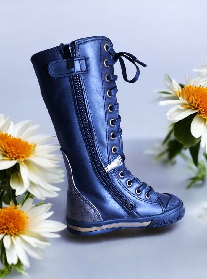 CATIMINI - NEW - BOTTES CUIR TYPE CAVALIÈRE CHOCOLAT AVEC FLEURS OR MORDORÉ 24