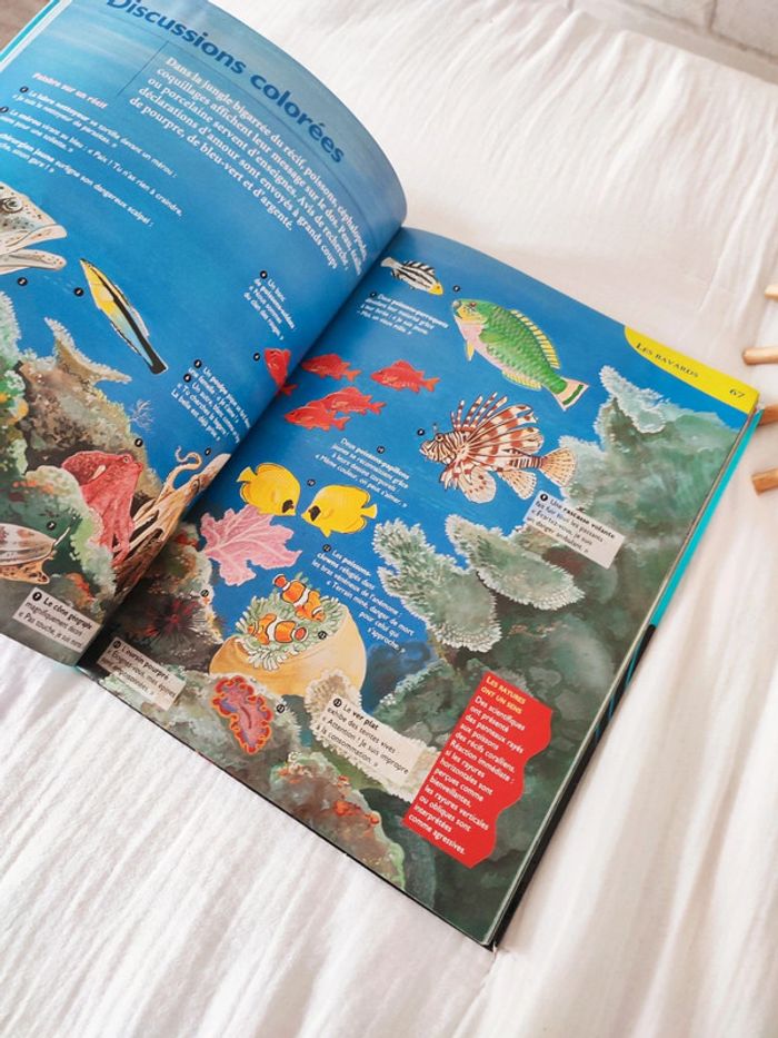 Dans l'océan, des milliers d'animaux marins se croisent et s'entrecroisent. Leurs réactions sont directement liées les unes aux autres. Performances des champions, conversations des bavards, migrations des voyageurs, banquets des gourmands, moeurs incroyables des amoureux, défenses et attaques des guerriers, autant de comportements à décrypter ! Ce voyage dans les fonds marins permet de réaliser à quel point les astuces que tous développent pour vivre et survivre sont ingénieuses, surprenantes... et sont source d'inspiration pour l'homme... remise activée sur les lots