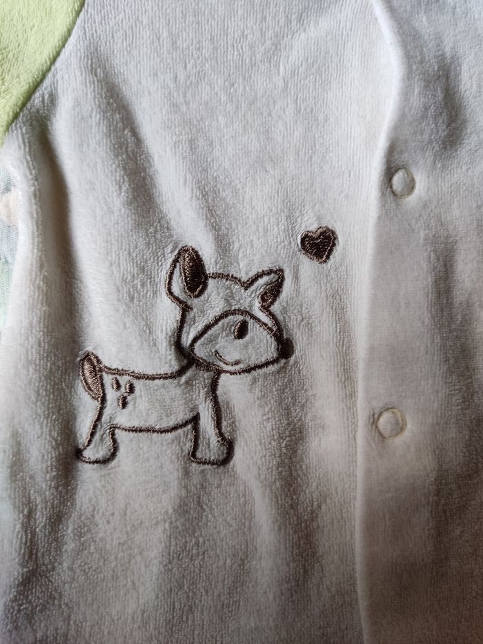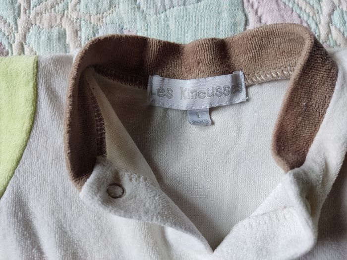 Pyjama velours en très bon état. Marque : Les Kinousses. Taille : 1 mois.