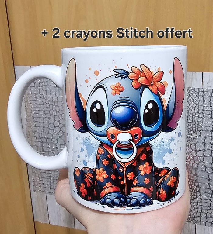 Mug stitch + 2 crayons stitch offert Passe au lave vaisselle et micro-onde Impression recto verso Prix ferme