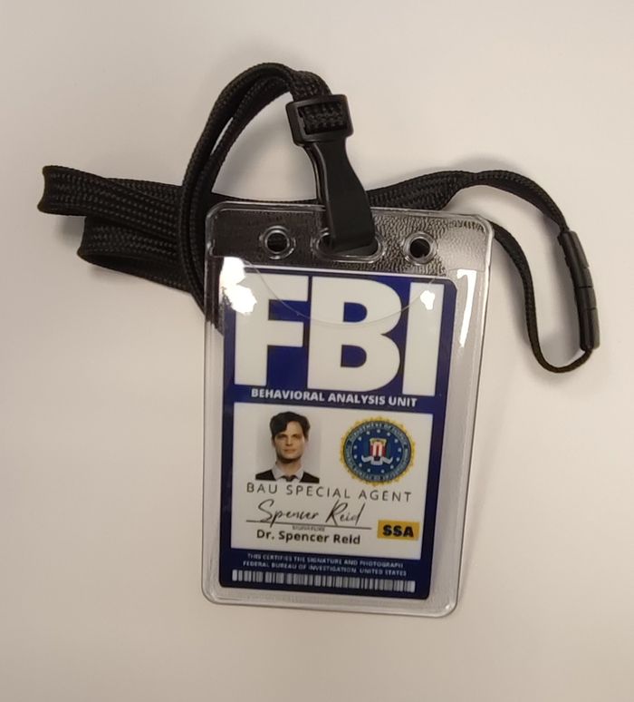 Badge du Dr Spencer Reid de la série Esprit Criminel. Taille : 8.6 / 5.4 cm Matière : PVC Recto