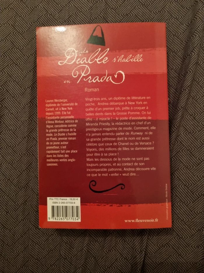 À vendre : Le Diable s’habille en Prada - Lauren Weisberger 👠📖 • Auteur : Lauren Weisberger • État : Très bon état ✅ • Résumé : Plongez dans l’univers impitoyable de la mode avec Andrea, assistante de la redoutable Miranda Priestly. Un roman culte, plein d’humour et de glamour ! ✨ 💰 Prix : 3 € 📦 Livraison : Envoi rapide et soigné. Un incontournable pour les fans de mode et de comédies pétillantes ! 💄📚 Contactez-moi pour plus d’infos. 😊