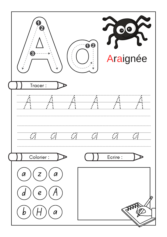 Ce livret d'activités permet de s'entraîner à l'écriture des lettres avec et sans lignes d'écriture. Il permet également de les reconnaître dans un mot ou parmi d'autres lettres.