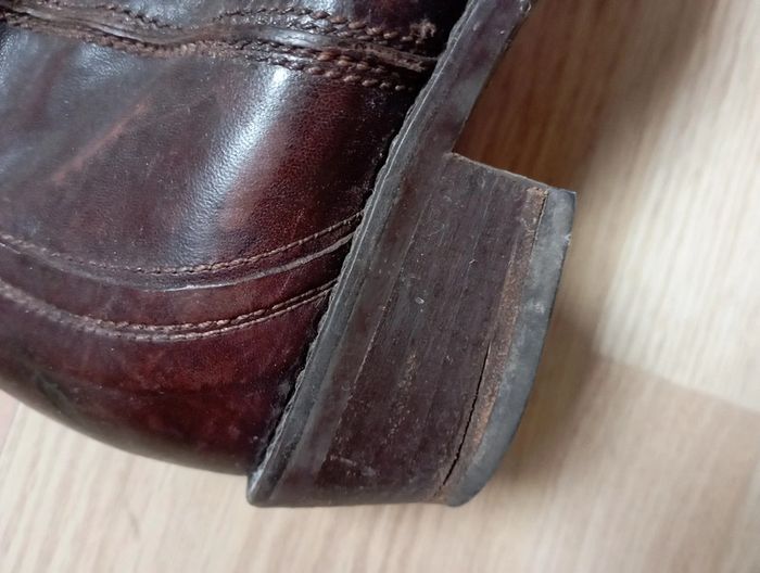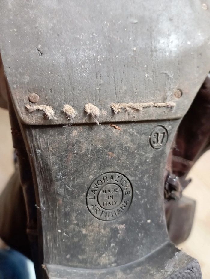 Portées mais encore en bon état. Cuir italien l'intérieur est en cuir. Elles ont été ressemellées et les talons ont été refaits.