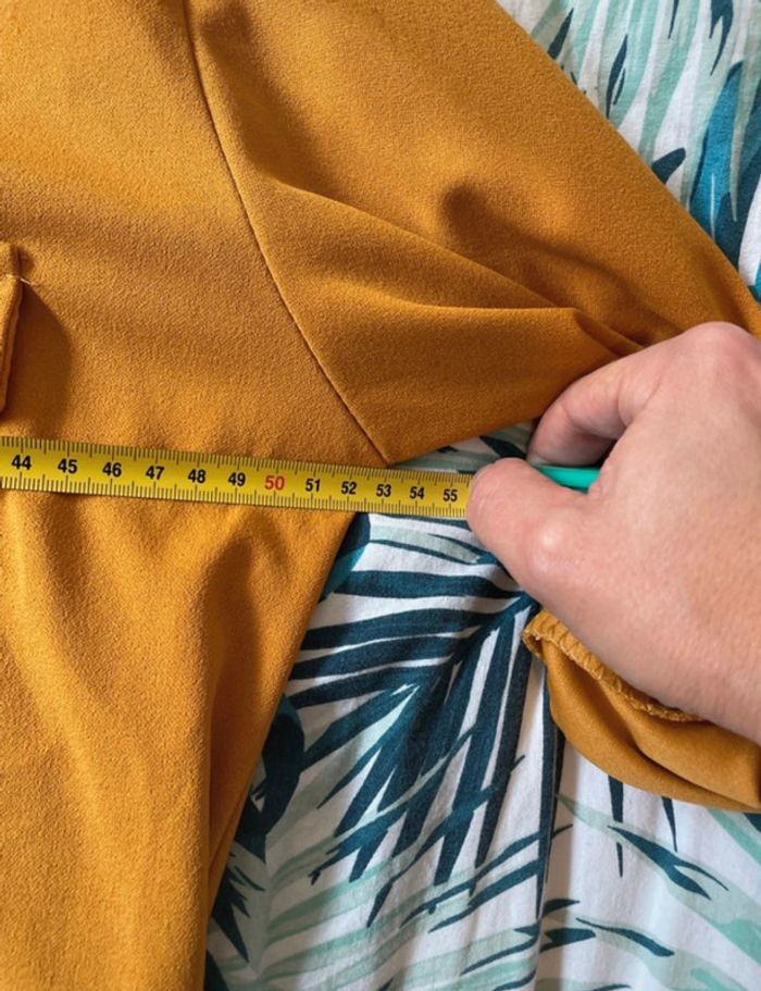 Chemisier qui peut servir de veste léger effet velours couleur moutarde En très bon état général , une petite couture s’en vas en bas . Voir photo 8 ( la ceinture n’est pas vendu avec ) Manches pouvant devenir 3/4 53 cm aisselle à aisselle 84,5 cm de longueur D’autres vêtements 36/38 Réduction sur lot activé alors n’hésitez. Je dois faire de la place pour des nouveautés 😉 Chemisier veste moutarde 38