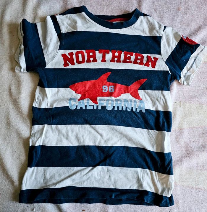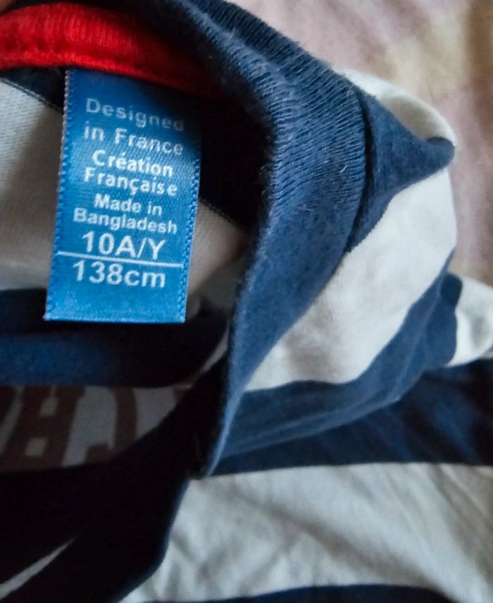 joli tshirt 📌Marque :okaidi 📌Taille :10 ans 📌Motif : rayures 📌Coloris :blanc bleu Pour voir tout mon 10 ans tapez dans la barre de recherche #10ansgarçonlili29217
