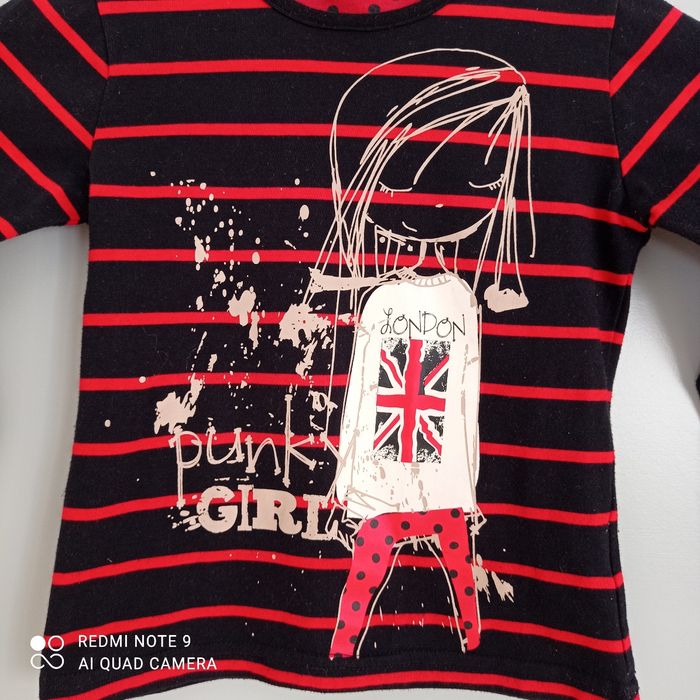 Rayures horizontales. Dessin d une fille avec drapeau britannique British. Coton, polyester.