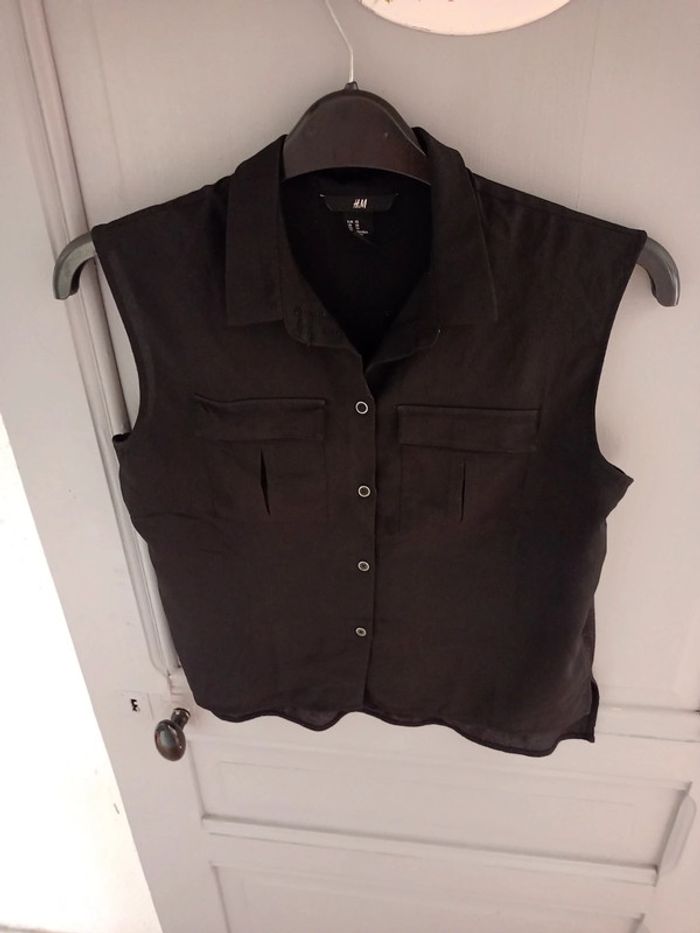 Débardeur noir col chemise - photo numéro 2