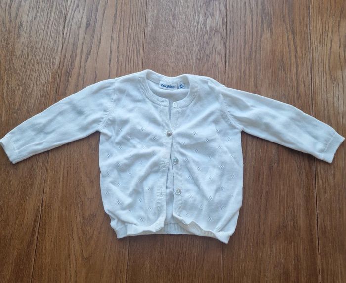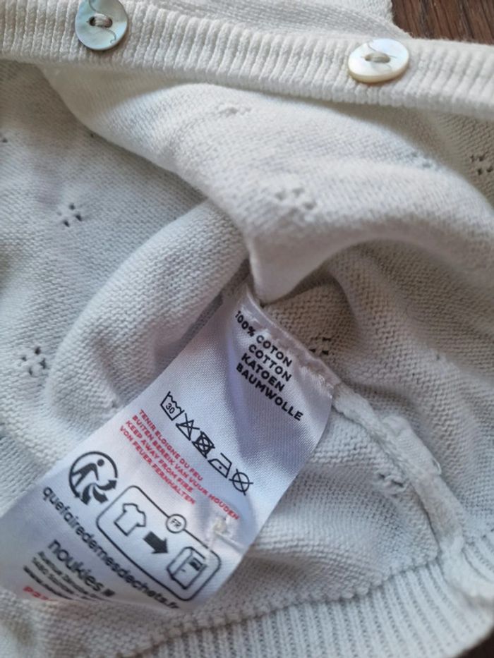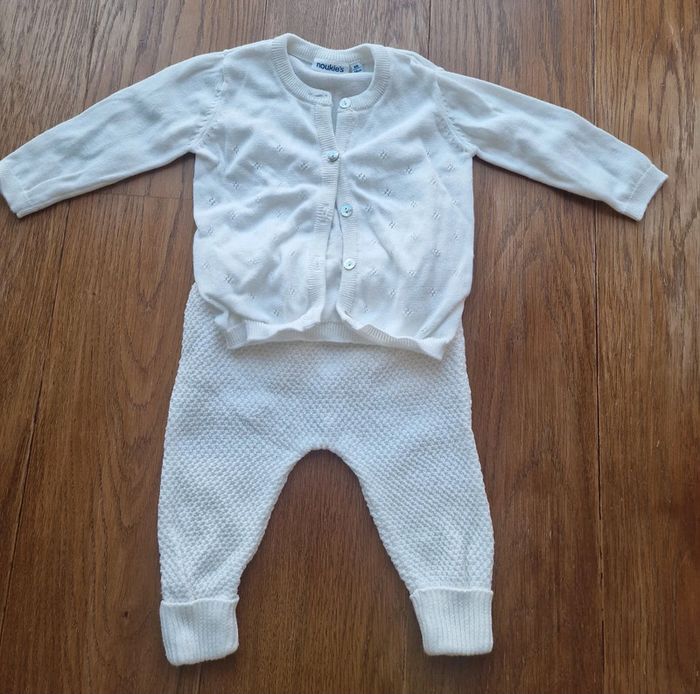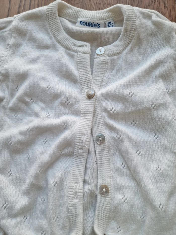 Gilet à boutons blanc avec délicats décors brodé Pantalon blanc coton Noukies 6 mois - 68 cm !!!réductions si achat de plusieurs articles