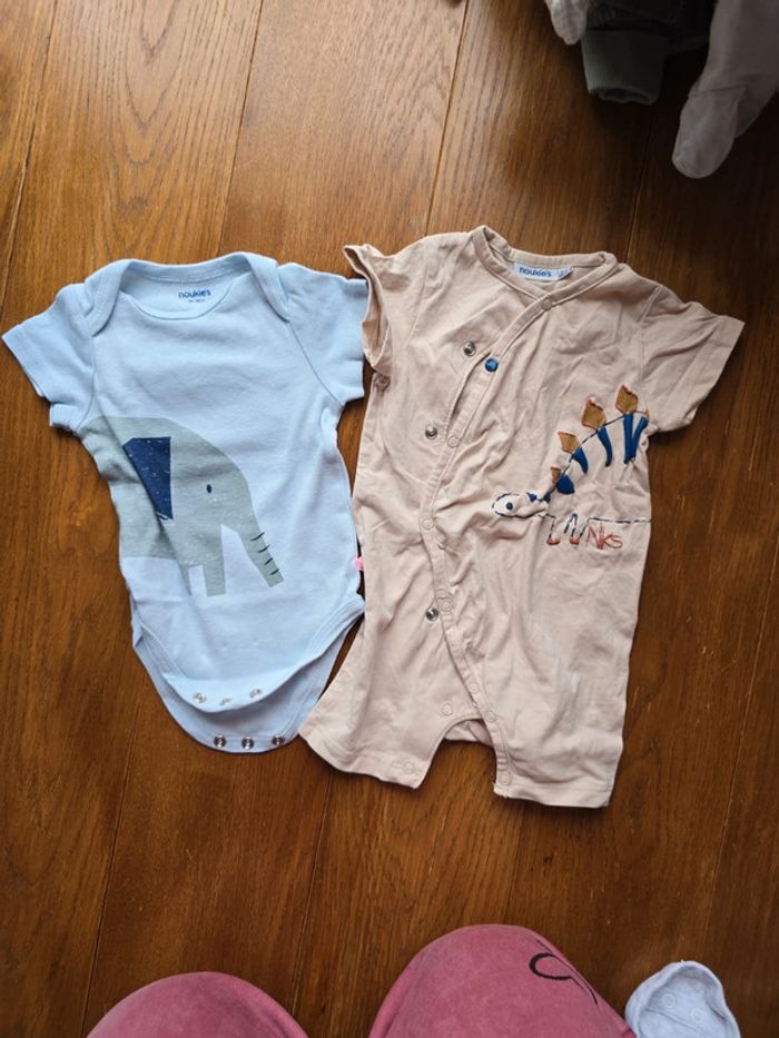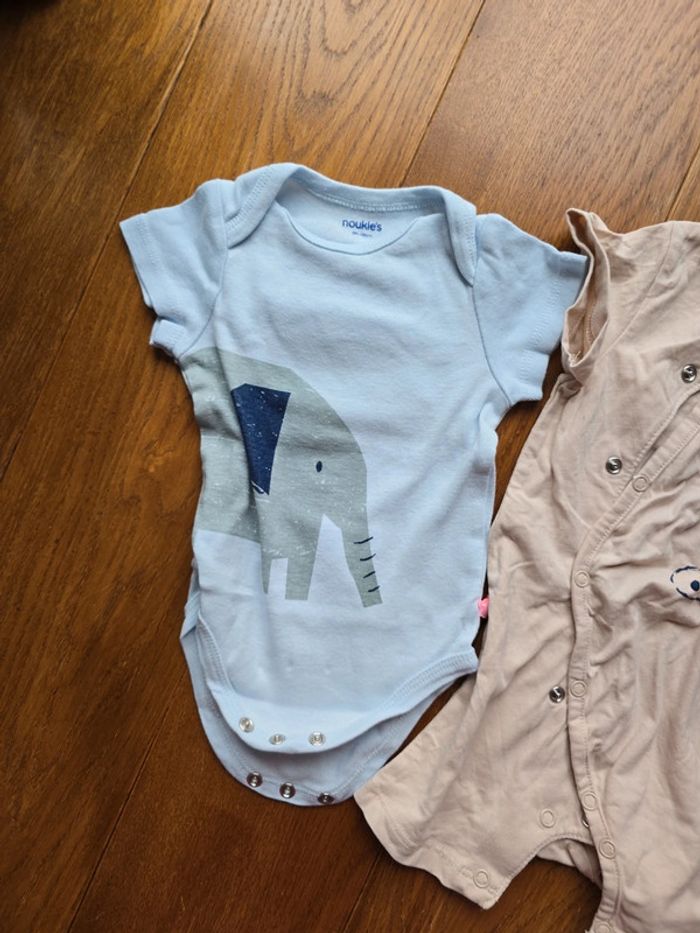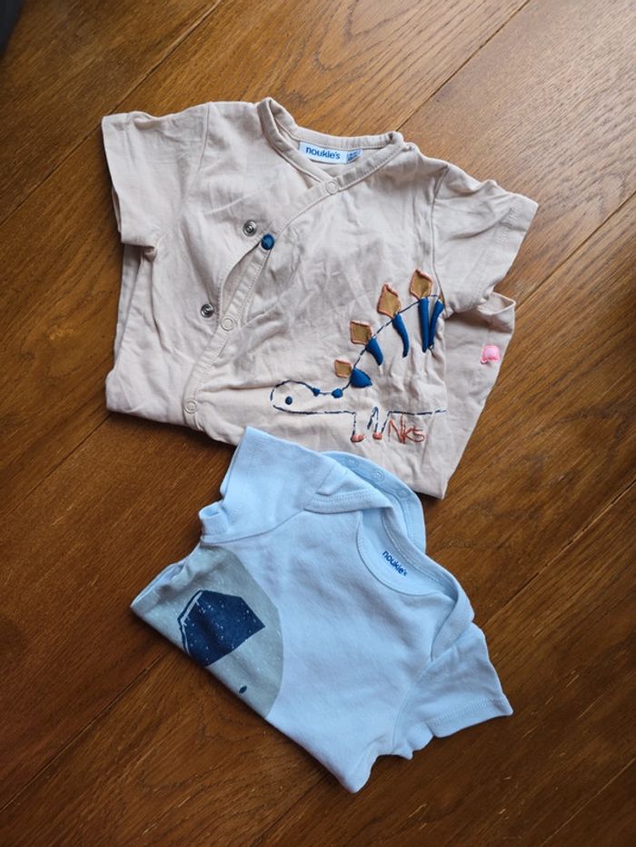 Lot de 2 boddie manches courtes Noukie's 6 mois > 68cm Coton Ouverture facile à pression Elephant & dinosaure !!! Réductions si achat de plusieurs articles