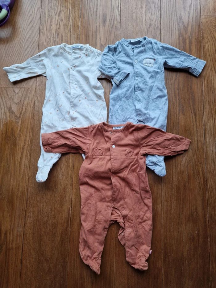 Lot de 3 body pijama dors bien avec pieds manches longues Marque Noukie's 3 mois / 62 cm 100 % coton Gris avec un détail éléphant Creme avec Motifs éléphants Brun avec petit oreille sur le devant !!! Réductions si achat de plusieurs articles