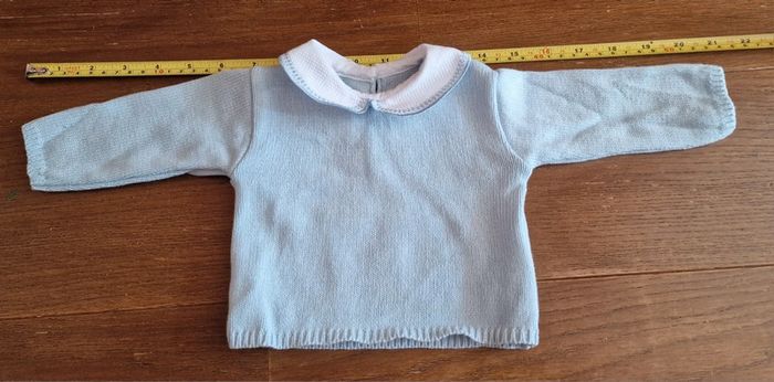 Ensemble bleu pastel pour bébé Petit pull à manches longues et col blanc Bonnet Salopette Détails nœud et boutons Cotton !!! Réductions si achat de plusieurs articles