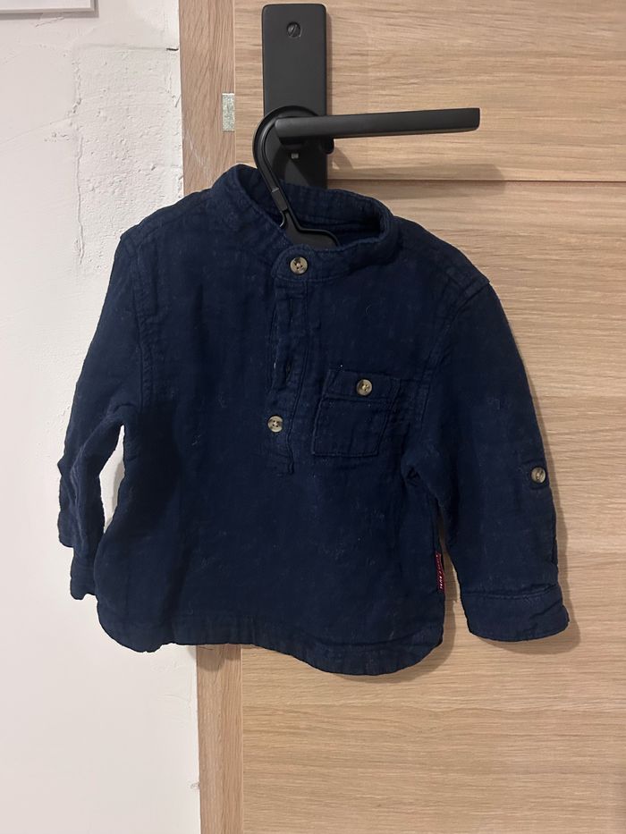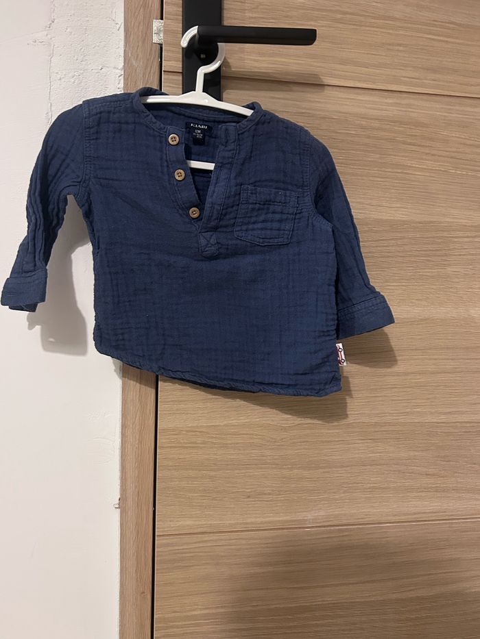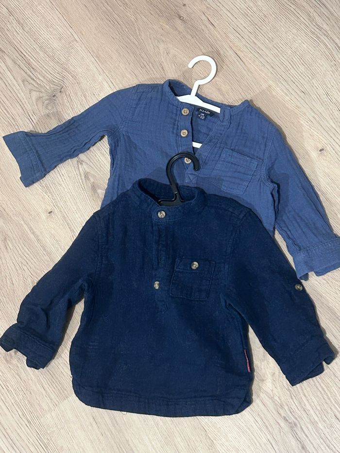 Lot de 2 chemises bleues. T: 12 mois mais je trouve qu’elles taillent petites, je pense que cela conviendra pour 9 mois.