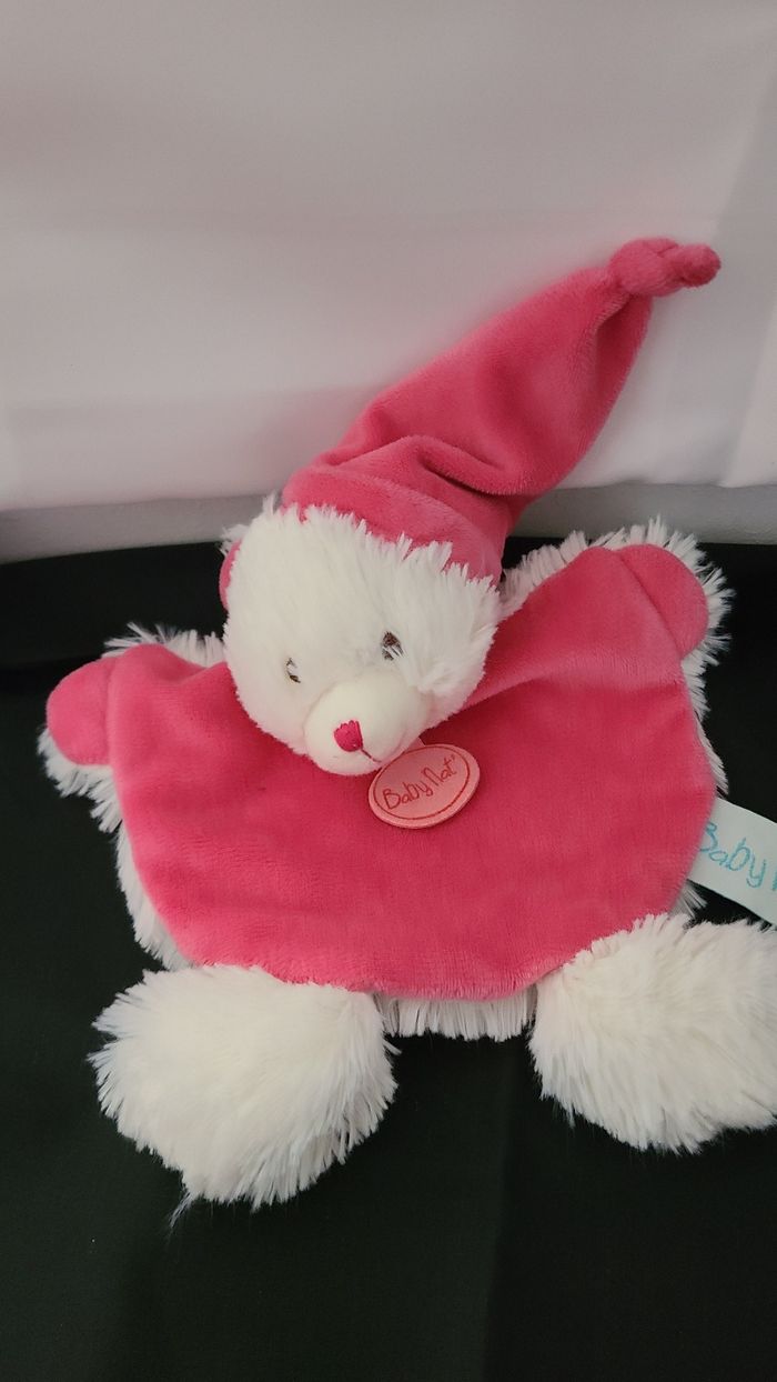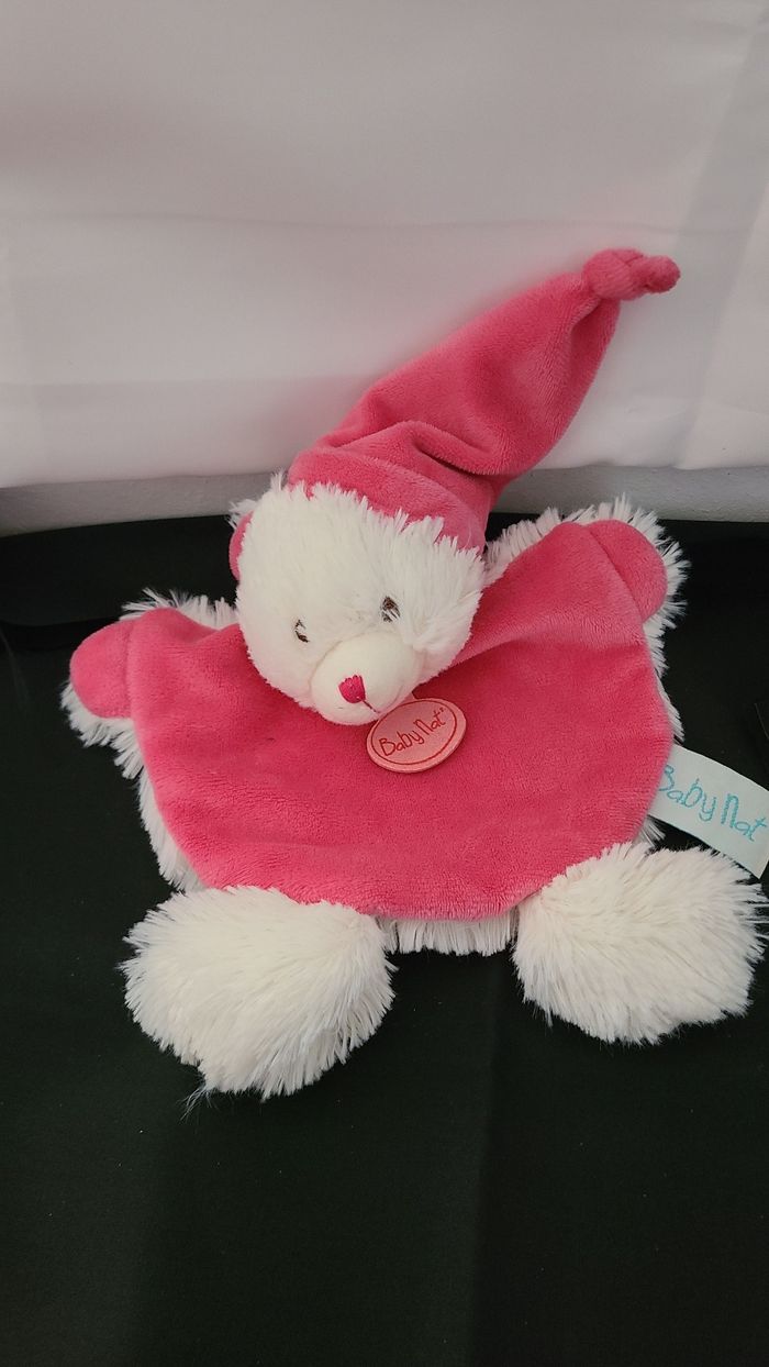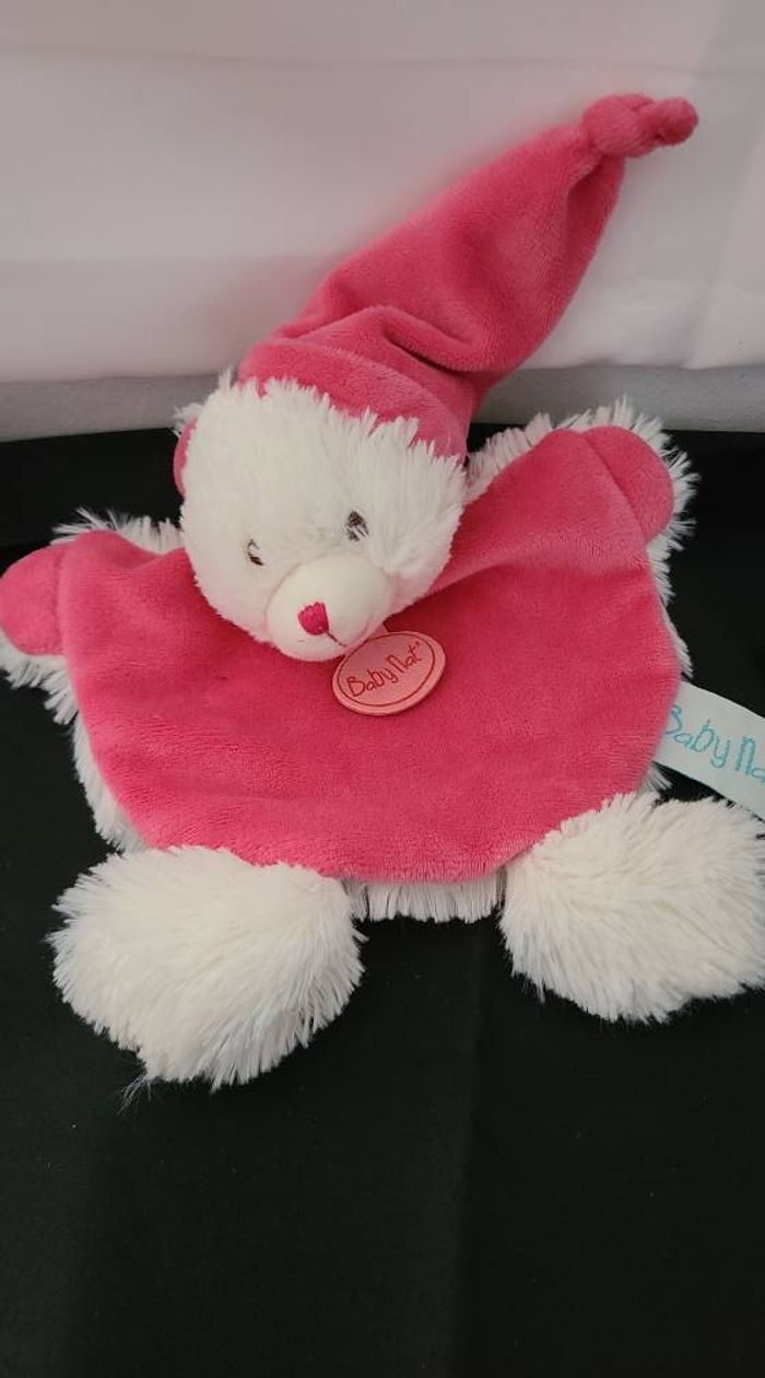 Doudou plat ours BABY NAT' Câlins rose - photo numéro 1