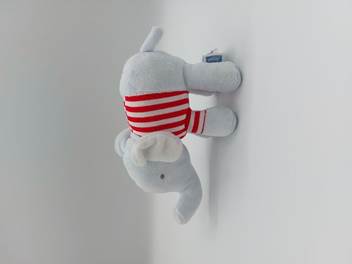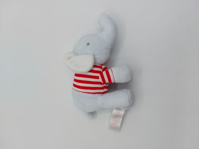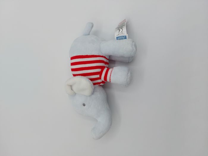 Peluche doudou éléphant bleu blanc JACADI tee-shirt rayures rouge longueur 20 cm hauteur 12 cm Très bon état - lavé avant la vente Envoi rapide A11905 #minotresor #peluche #doudou #plush #knuffel #comforter