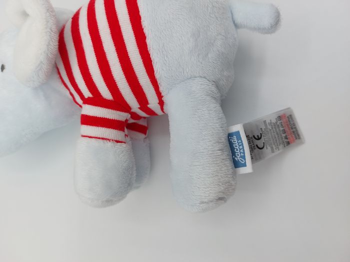 Peluche doudou éléphant bleu blanc JACADI tee-shirt rayures rouge 20 cm TBE - photo numéro 4