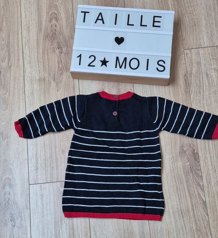 Robe pull marinière bleu marine taille 12 mois Alphabet - photo numéro 1