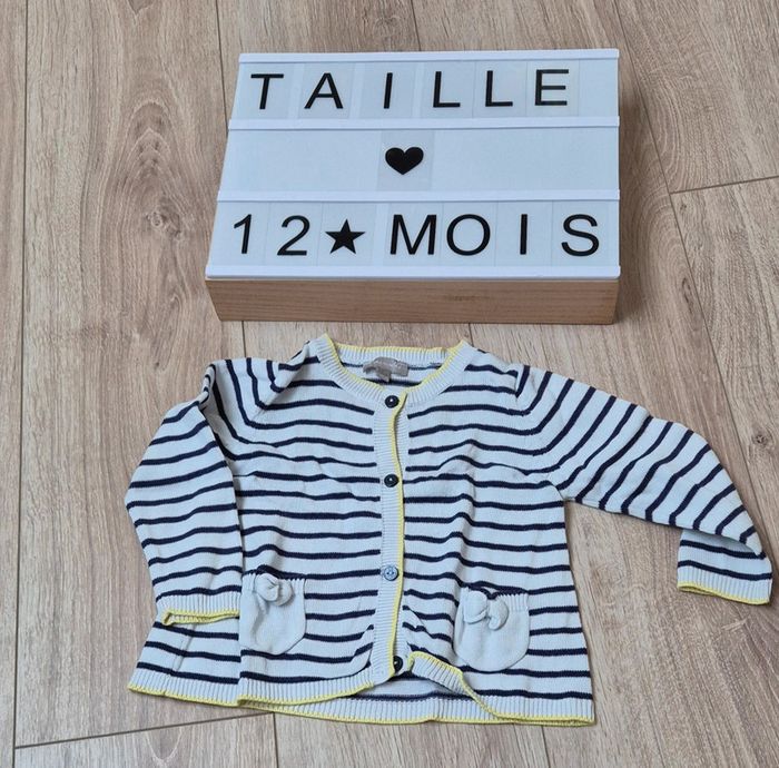 Ensemble jean tee shirt gilet marinière 12 mois - photo numéro 4
