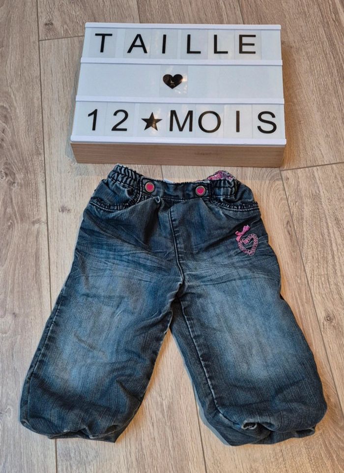 Ensemble jean tee-shirt gilet fille taille 12 mois