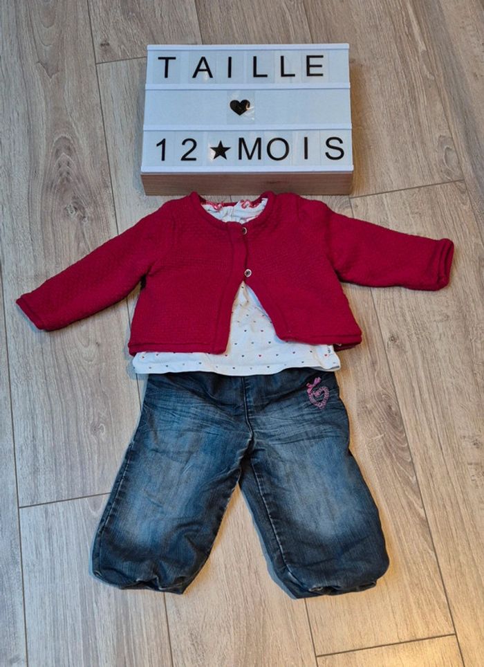 Ensemble jean tee-shirt gilet fille taille 12 mois - photo numéro 1