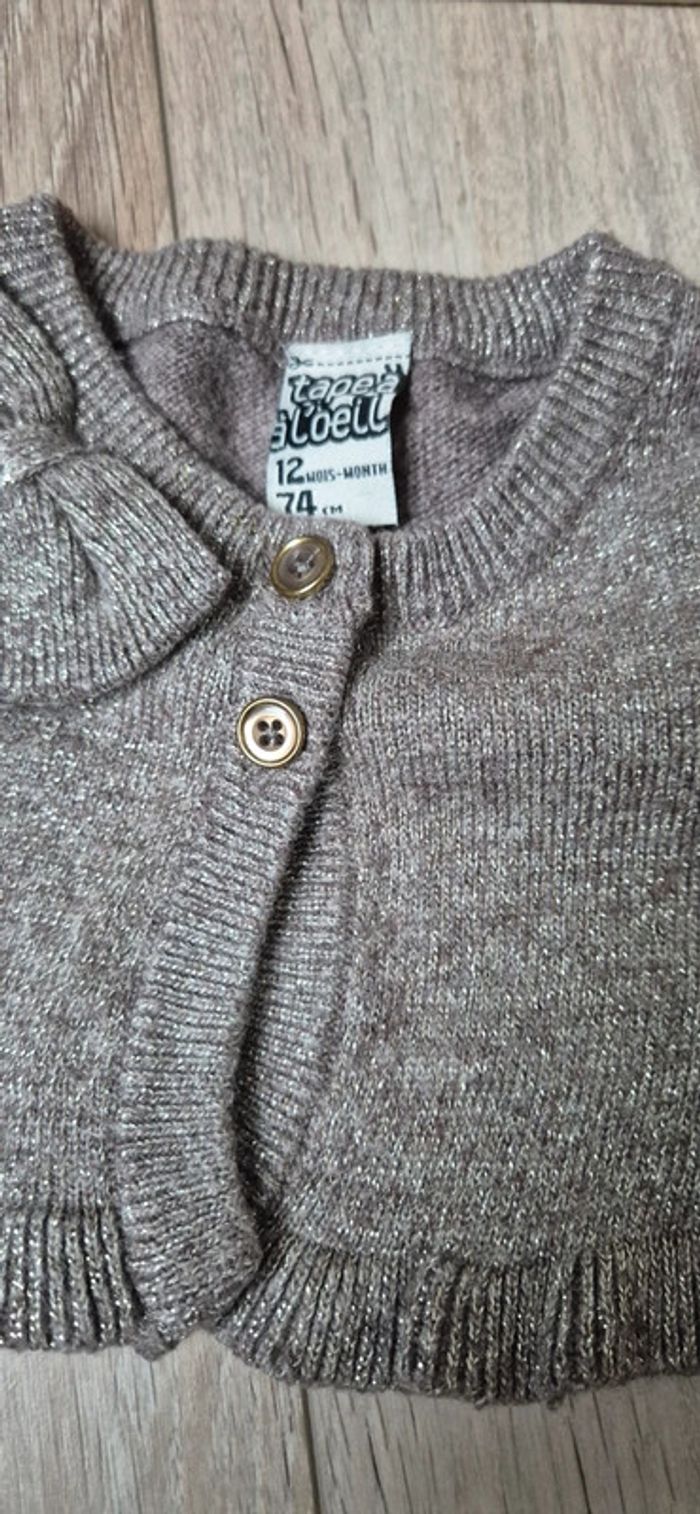 Vends un boléro gris effet pailletée Marque Tape à l'œil Taille 12 mois