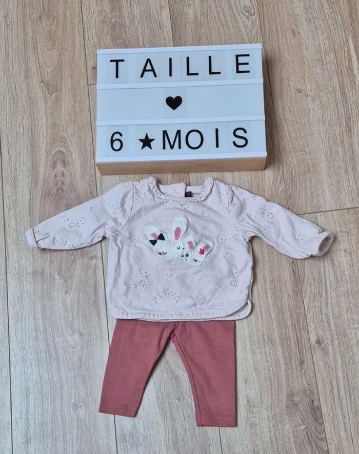 Vends un ensemble composé d'un haut pull et d'un legging Pour bébé fille taille 6 mois Marque du haut Sergent Major Legging Marque Kiabi