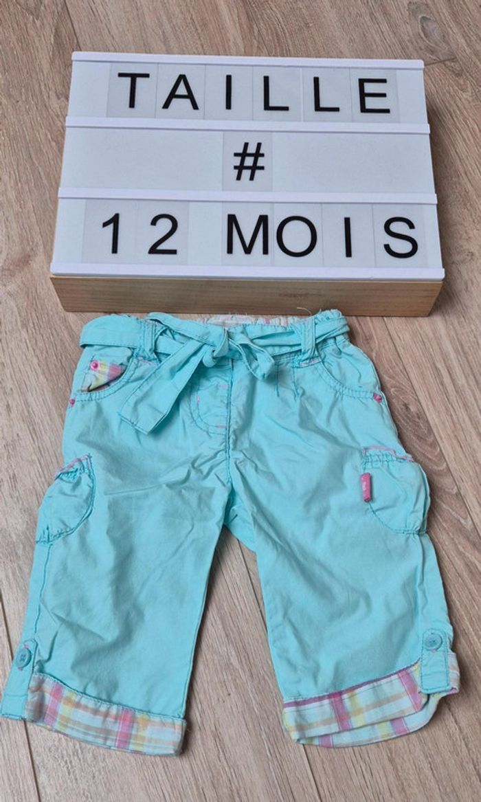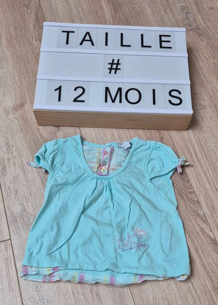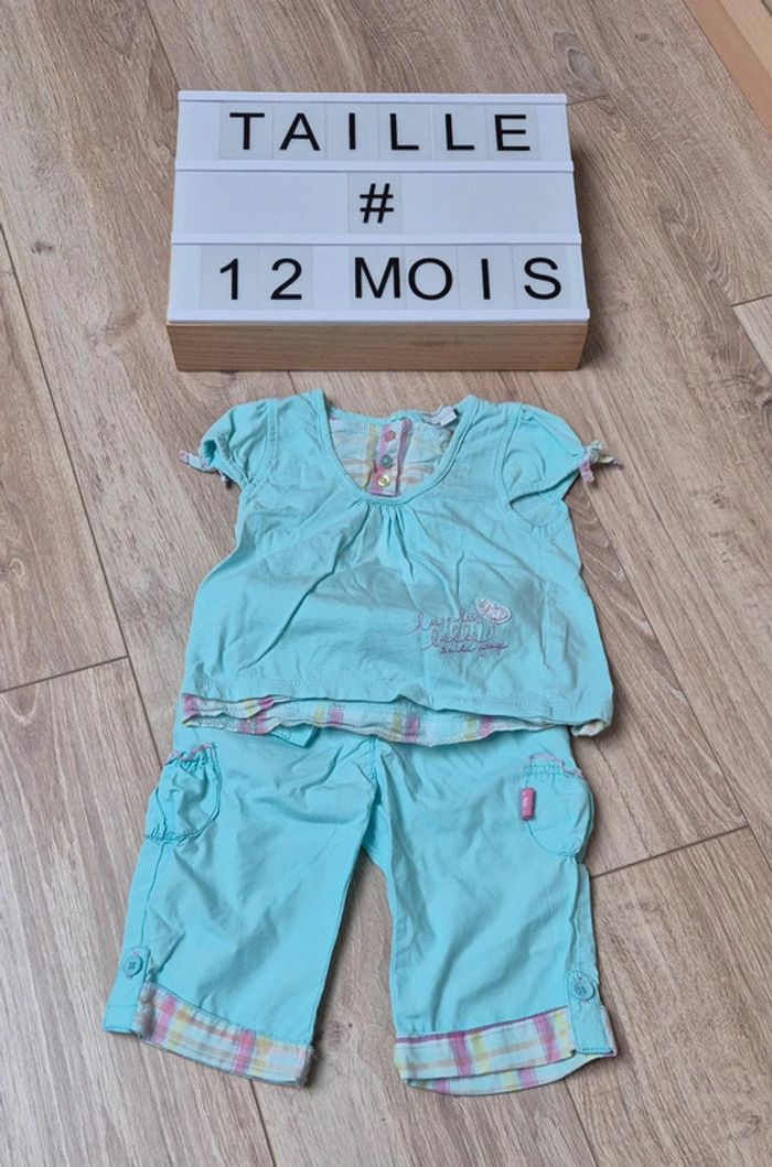 Vends un ensemble pour bébé fille taille 6 mois Marque Kimbaloo Il est composé d'un pantalon et d'un tee-shirt manches courtes couleur turquoise.
